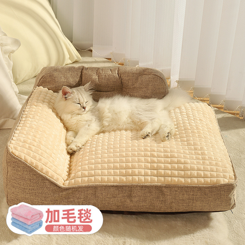 • [따뜻함] 양면 등받이 소파 고양이 둥지(따뜻한 밀크티) + 담요*1