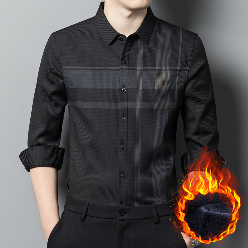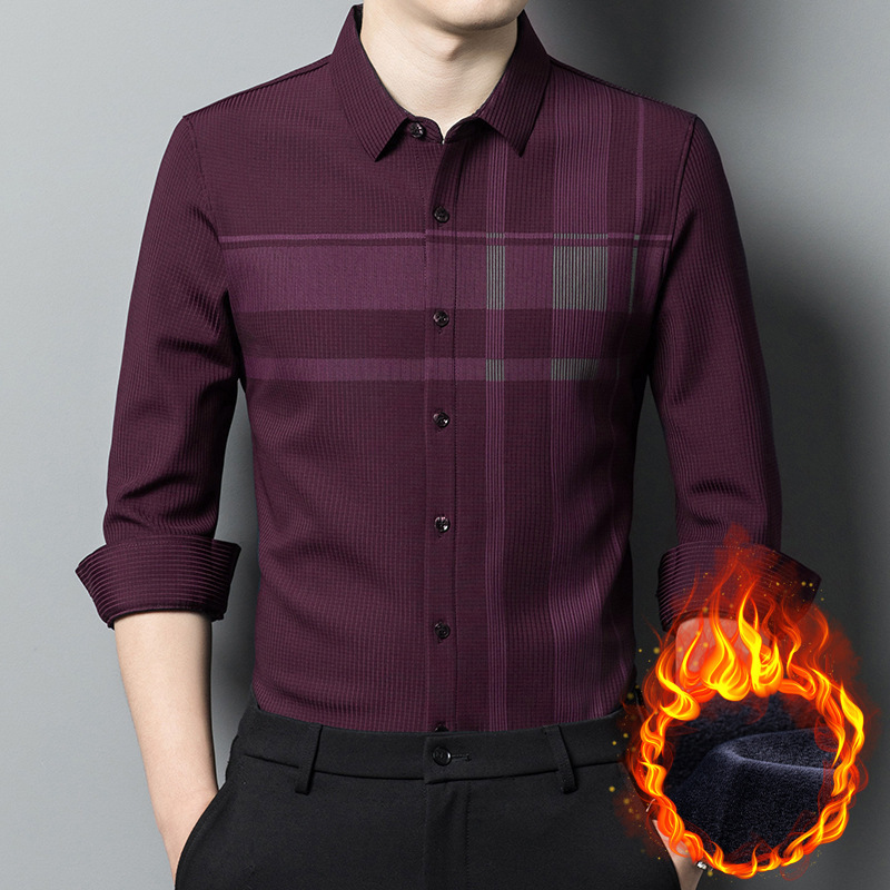 젊고 중년 남성용 기모 셔츠 가을과 겨울 신사업 캐주얼 스트라이프 느슨한 두꺼운 따뜻한 셔츠 남성용 카디건스토어 가기