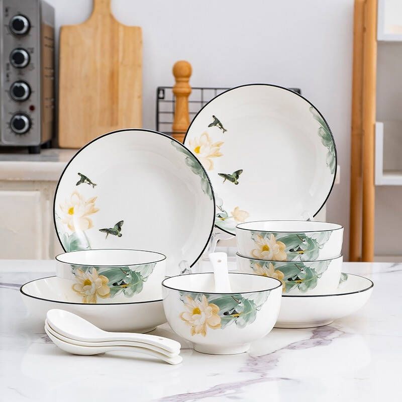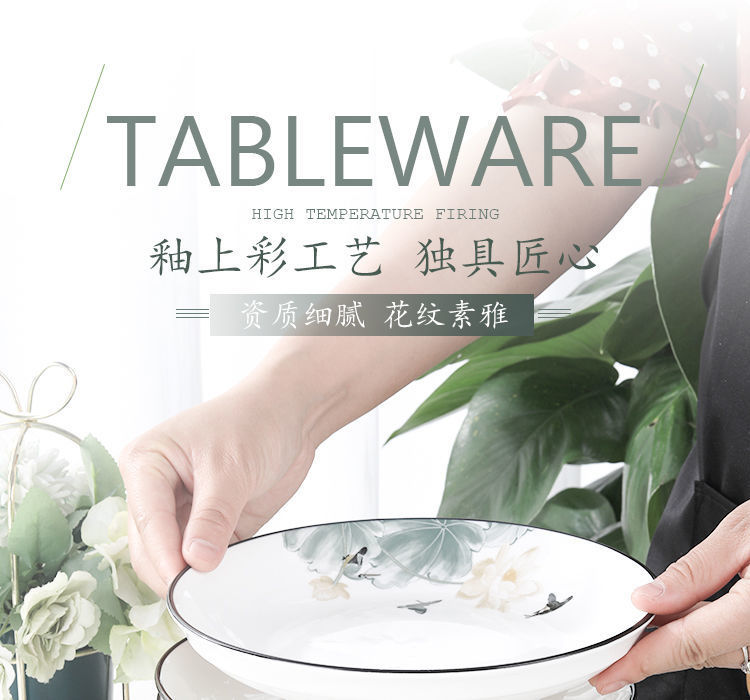 중국 바람 연꽃 세계 그릇 세트 가정용 야채 접시 밥 그릇 조합 간단한 개성 연꽃 창젠스토어 가기