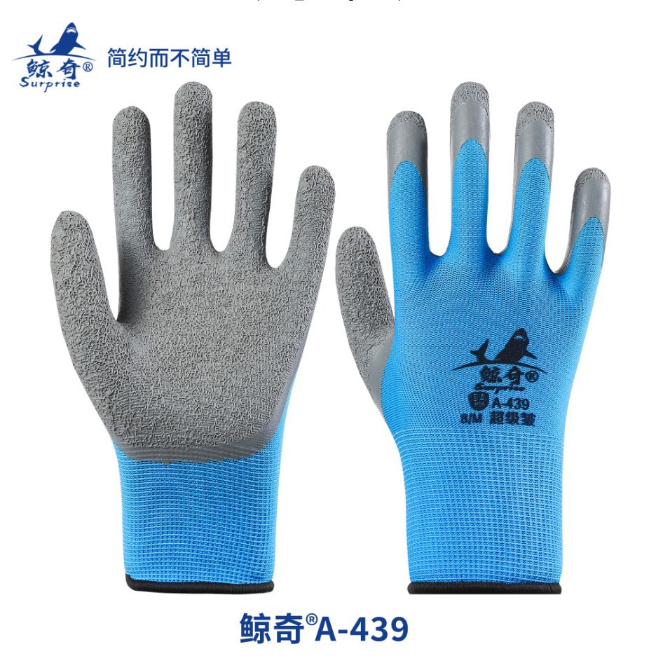 고래 A439 슈퍼 주름진 접착제 장갑 엄지 전체 담근 그레이 블루 주름 내마모성 내유성 미끄럼 방지 노동 보호 장갑스토어 가기
