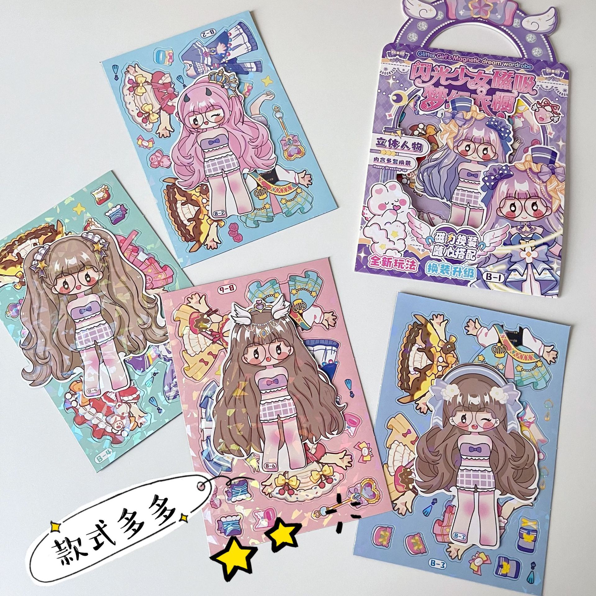 새로운 플래시 소녀 원피스 업 자기 스티커 만화 자기 스티커 반복적으로 스티커 소녀 원피스 스티커 장난감 유치원스토어 가기