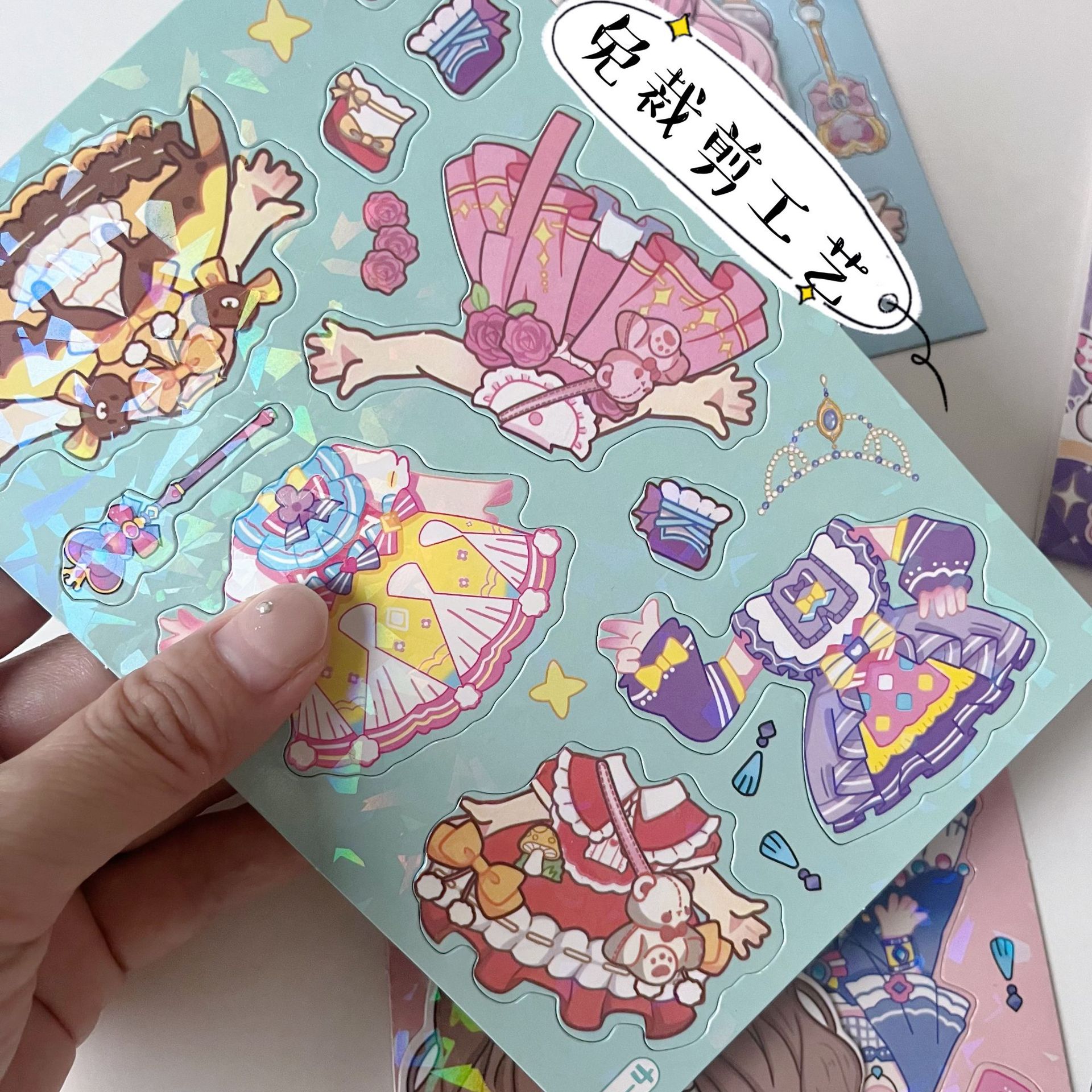 새로운 플래시 소녀 원피스 업 자기 스티커 만화 자기 스티커 반복적으로 스티커 소녀 원피스 스티커 장난감 유치원