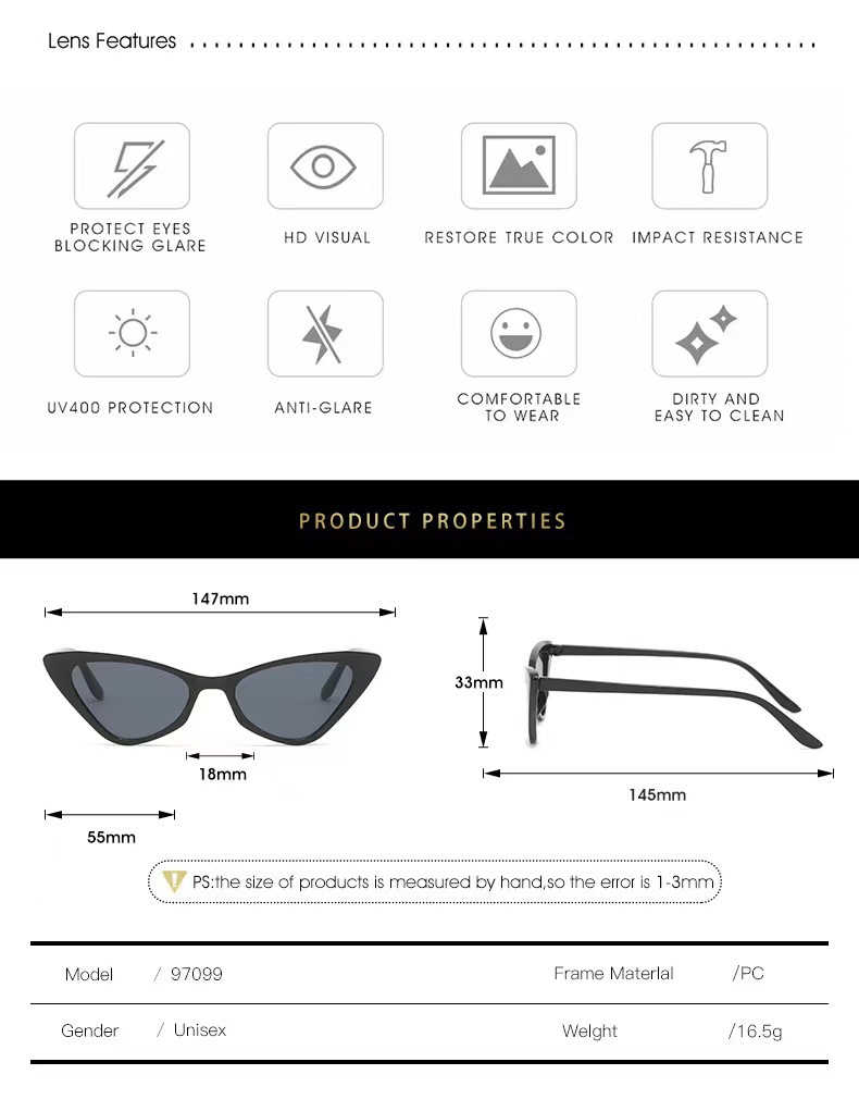 새로운 고양이 눈 선글라스 유럽과 미국 패션 복고풍 반전 삼각형 작은 프레임 국경 안경 도매 세대스토어 가기