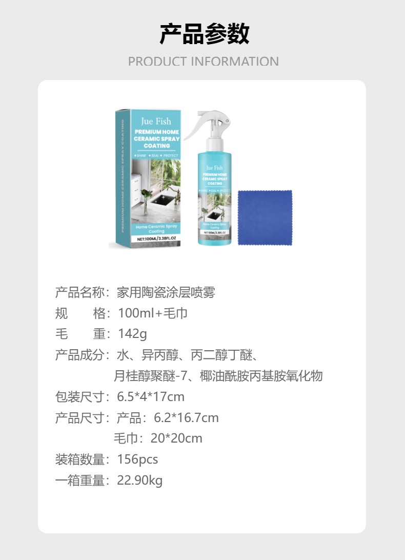 JUE FISH 가정용 세라믹 코팅 스프레이 실내 타일 청소 연마 탈지 먼지 refurbishing spray