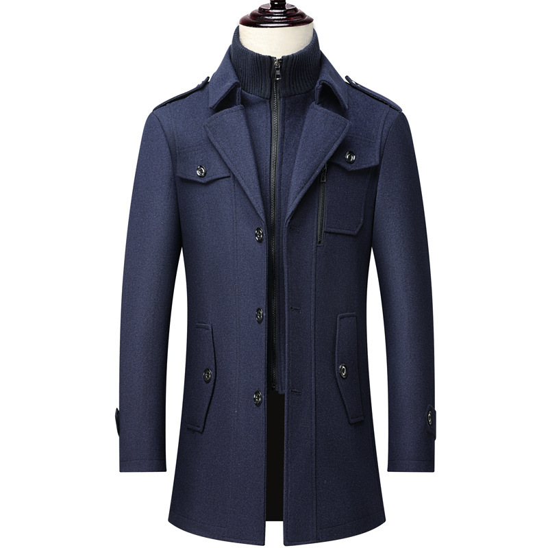 가을과 겨울 남성 비즈니스 울 코트 패션 더블 칼라 내한모 코트 남성용 코트 크로스 보더 모직 코트 남성