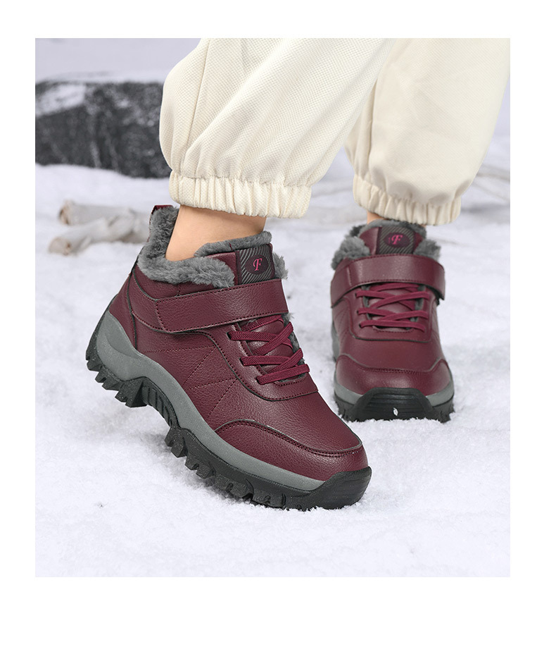 겨울 새 여성용 코튼 신발 기모 따뜻한 스노우 부츠 여성용 가죽 방수 워킹 슈즈 미끄럼 캐주얼 여성용 부츠