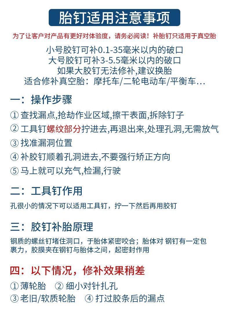 • 글루 스테이플러 50개, 무료 드라이버 1개, 범용 튜브리스 타이어