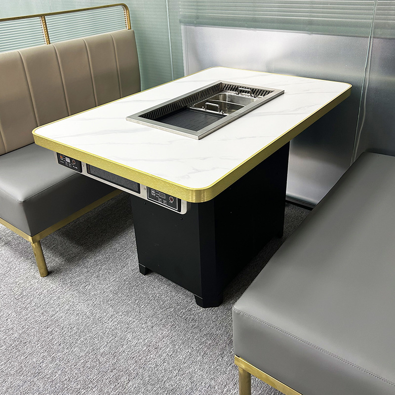 무연 자체 정화 로스팅 및 헹굼 통합 냄비 바베큐 테이블 바베큐 오븐 암판 대리석 상업 식탁 제조업체 도매스토어 가기