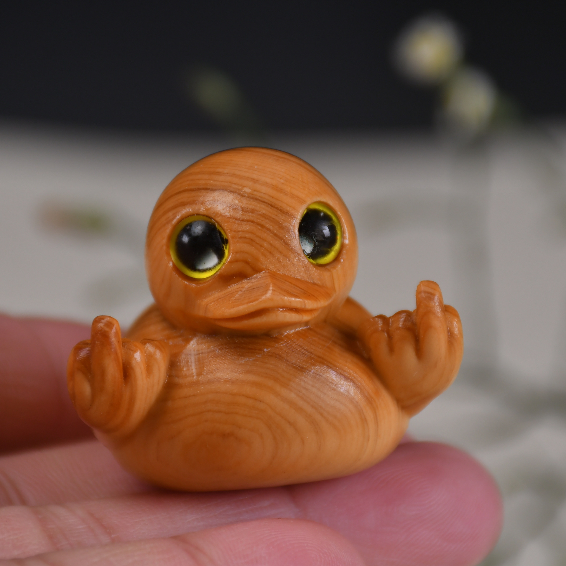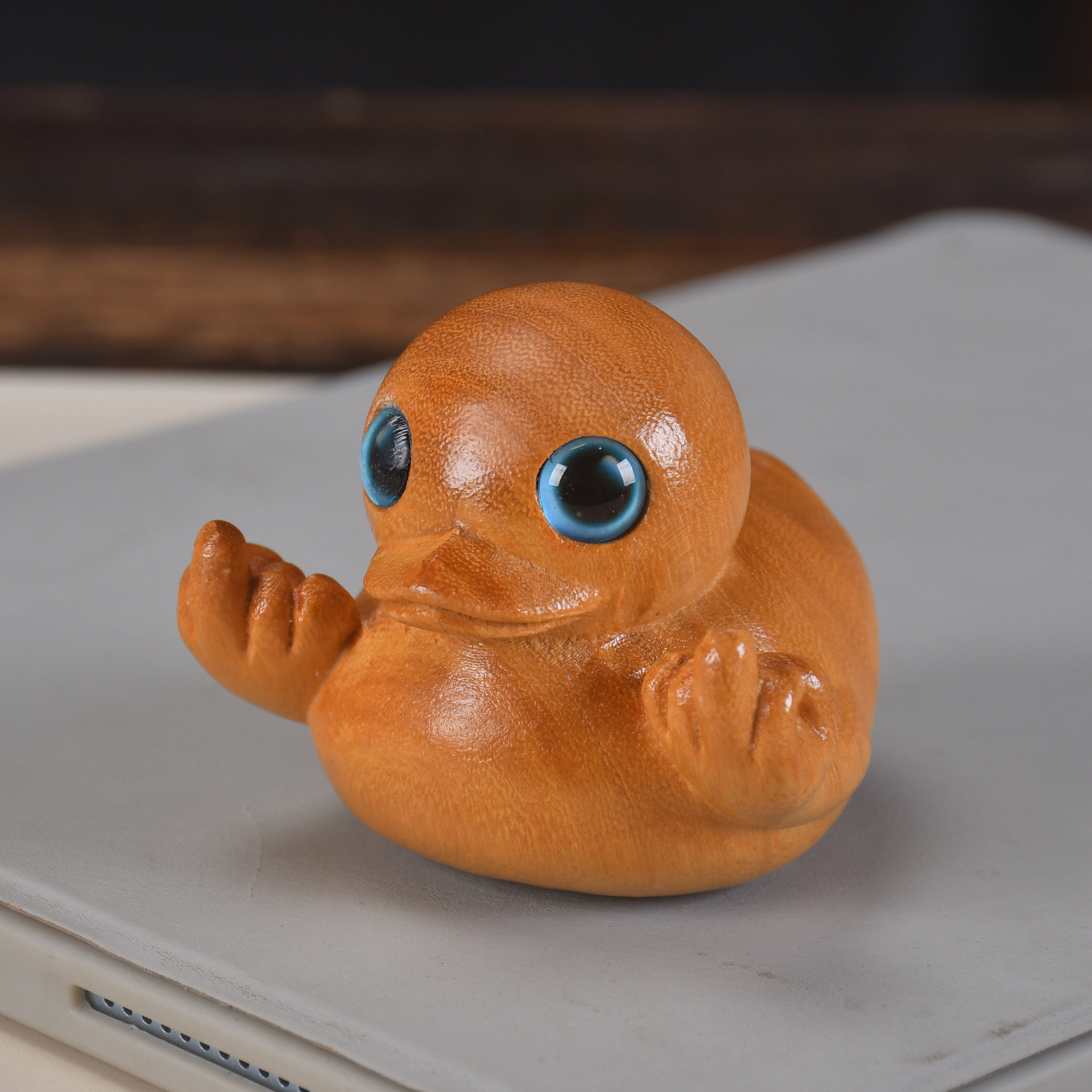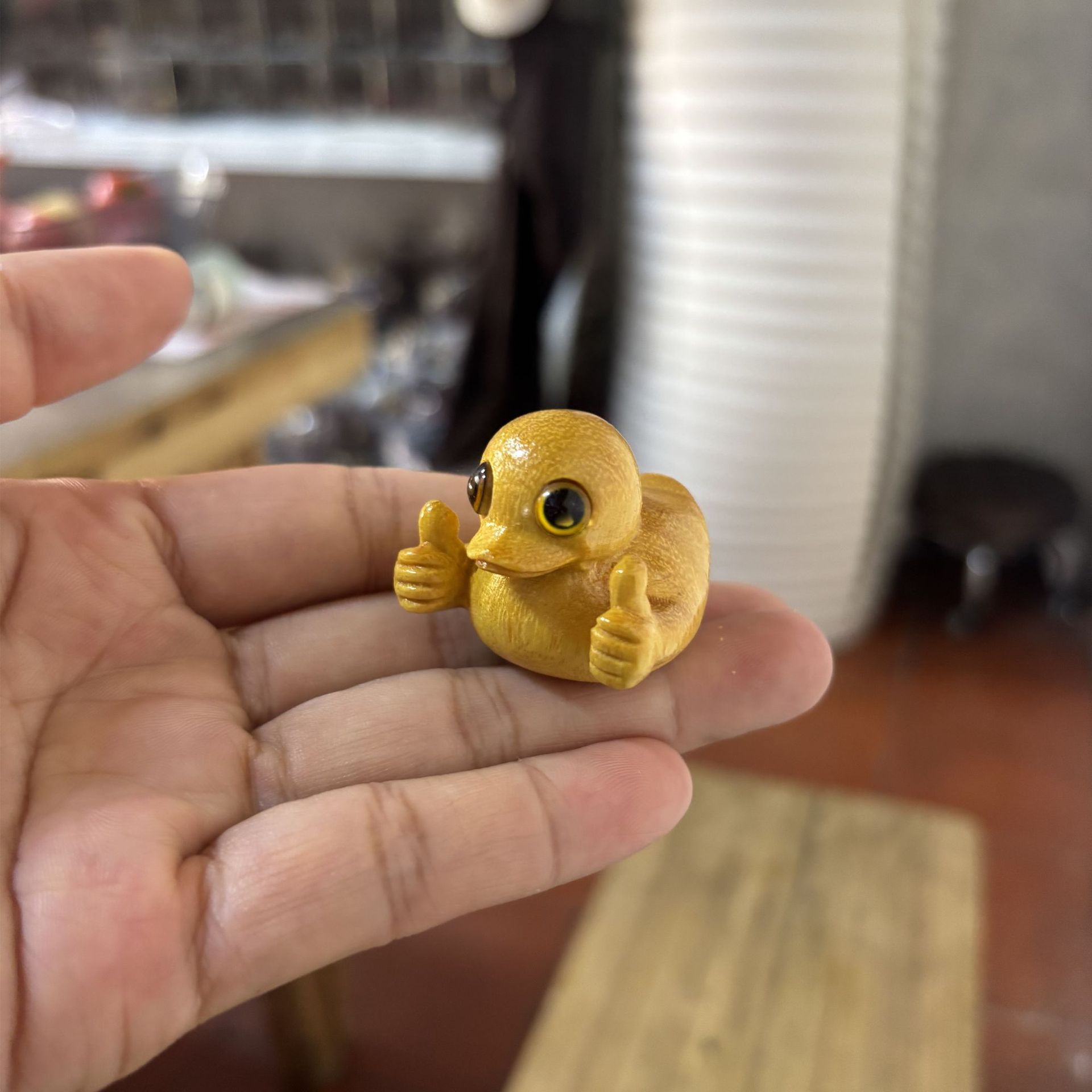 Thuja 나무 조각 귀여운 노란 오리 만화 휴일 선물 despise 오리 단단한 나무 공예 장식 선물 작은 장식품