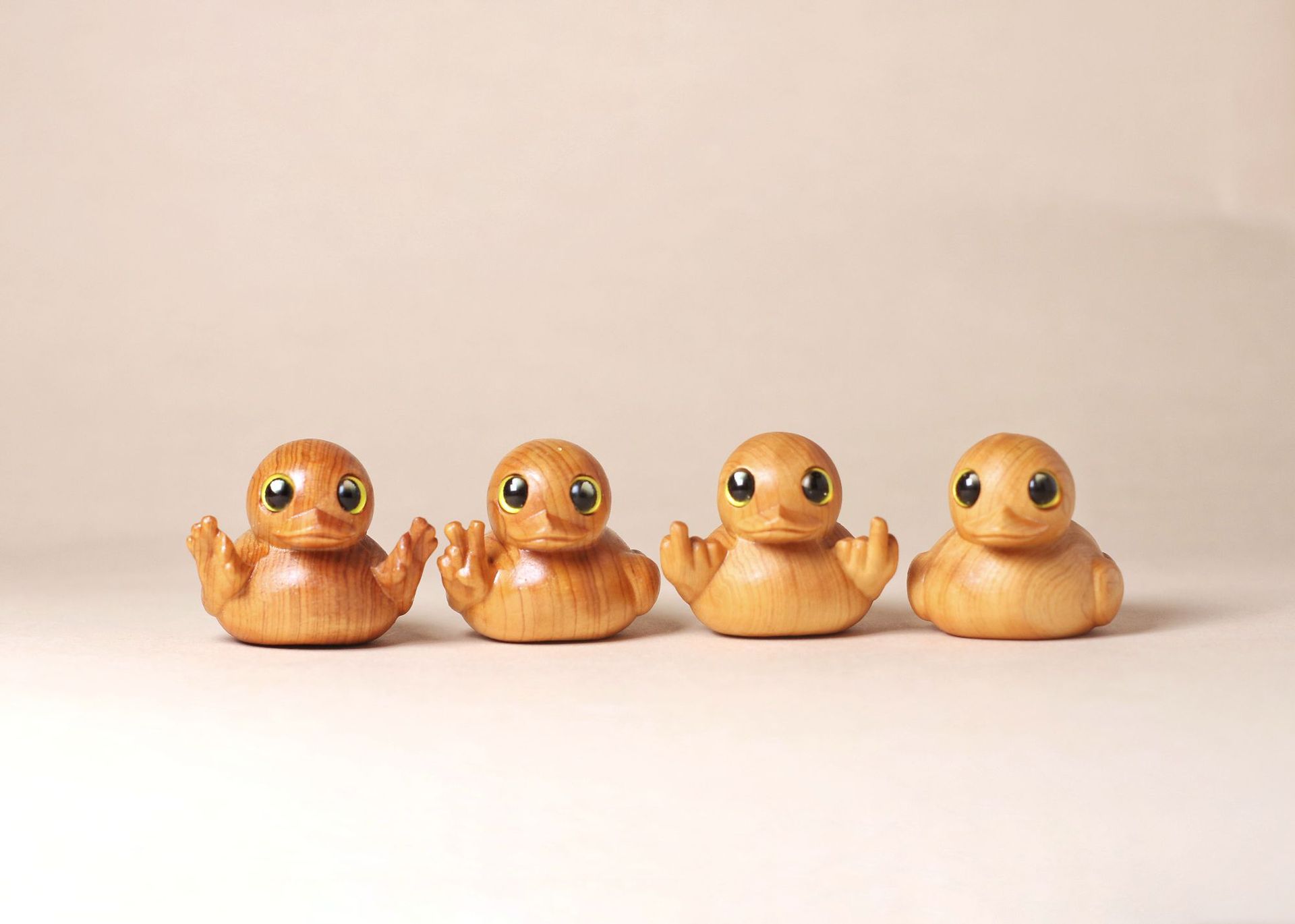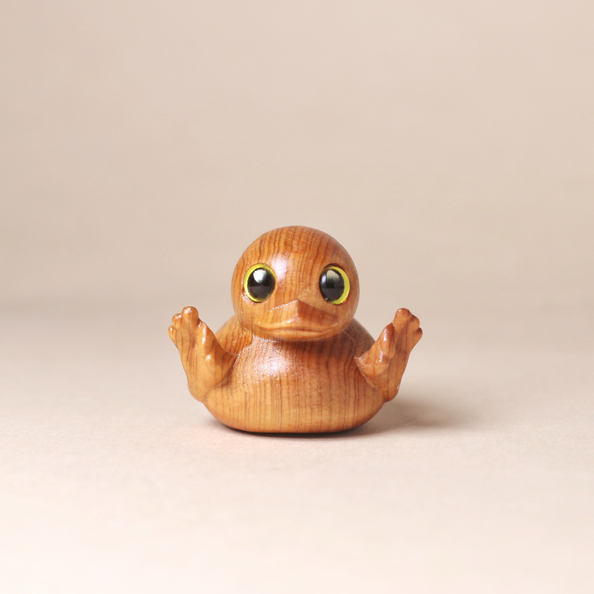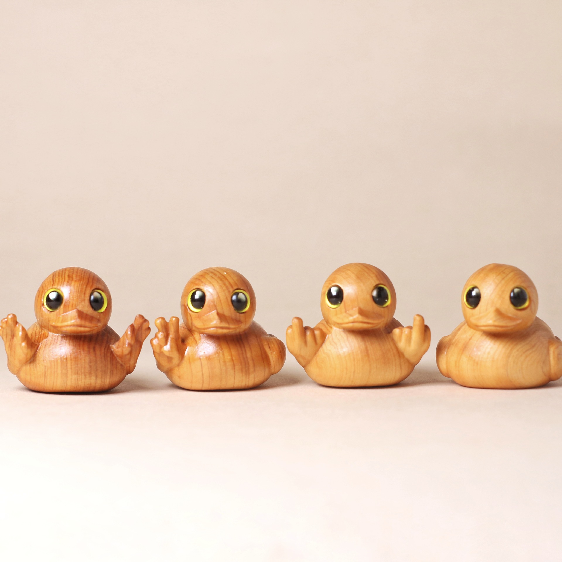 Thuja 나무 조각 귀여운 노란 오리 만화 휴일 선물 despise 오리 단단한 나무 공예 장식 선물 작은 장식품