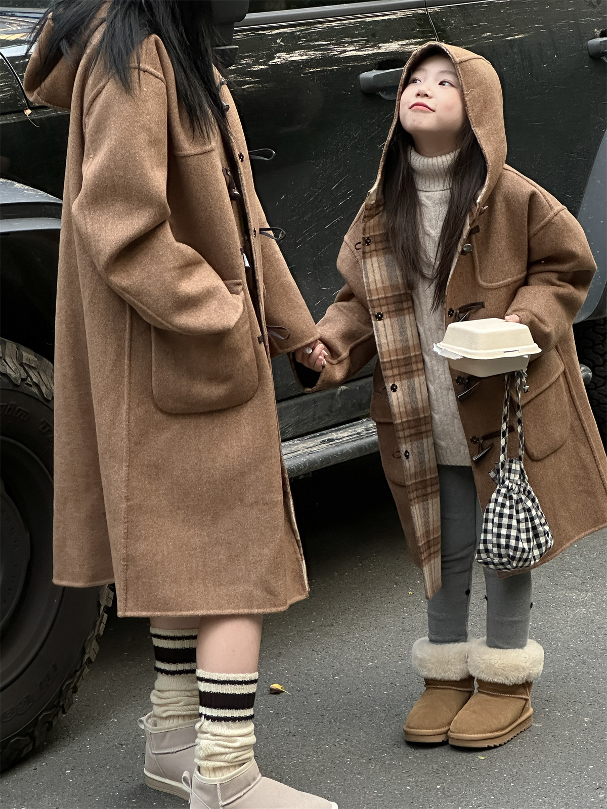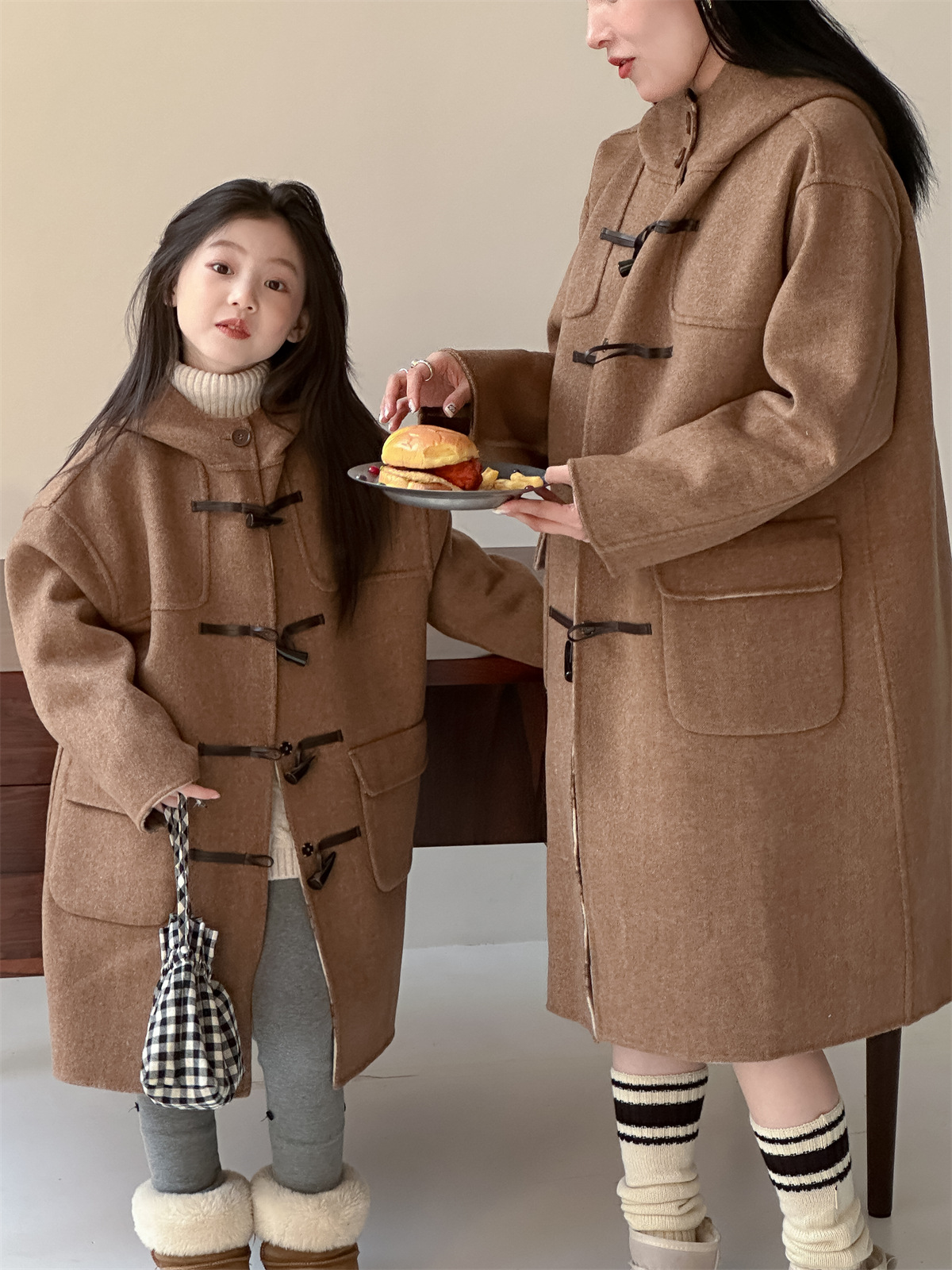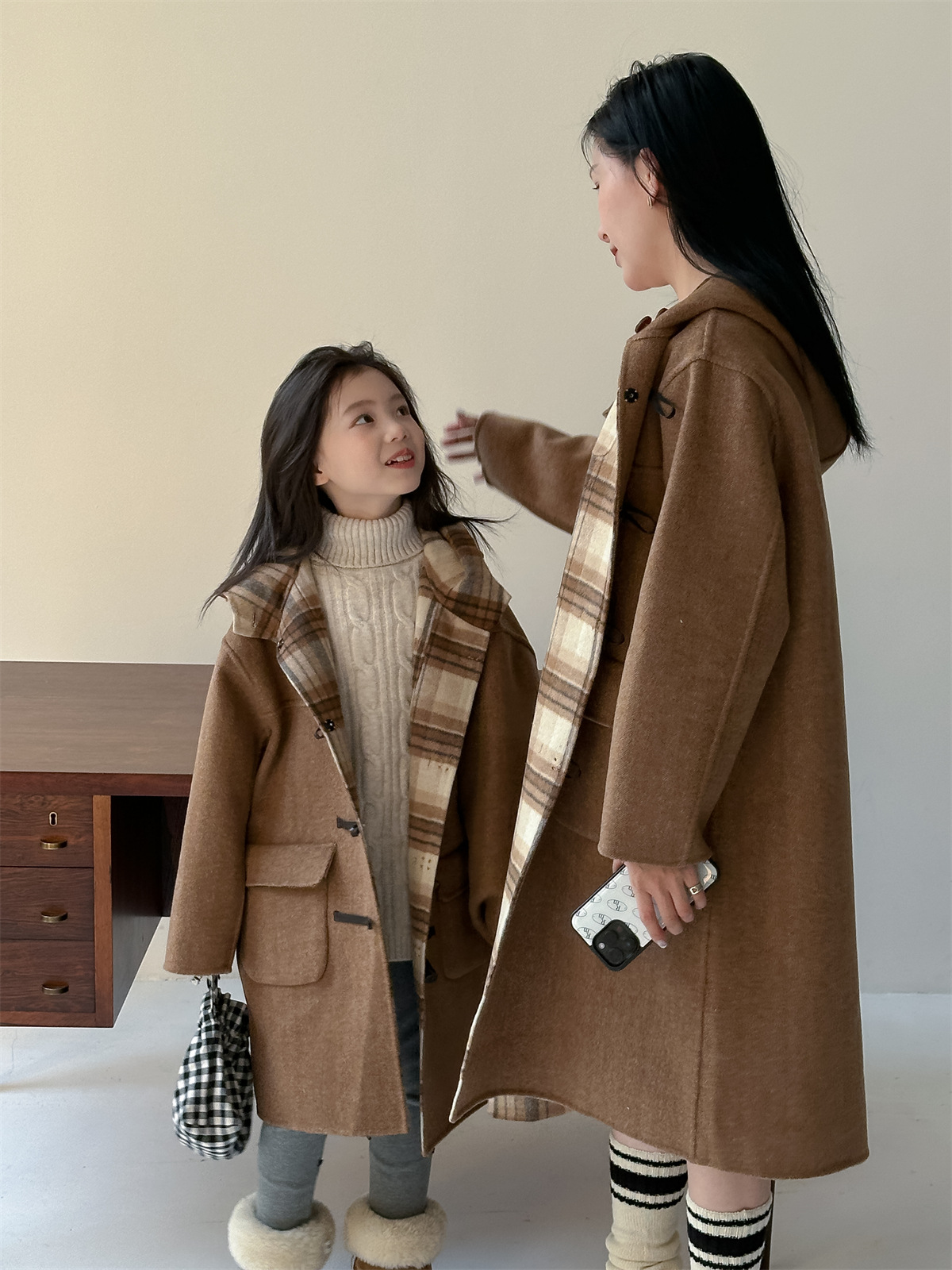 꽃과 어린이 의류 부모-자식 양모 코트 2024 겨울 새로운 양면 모직 코트 모직 코트스토어 가기