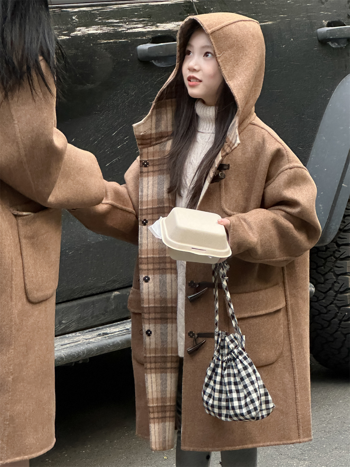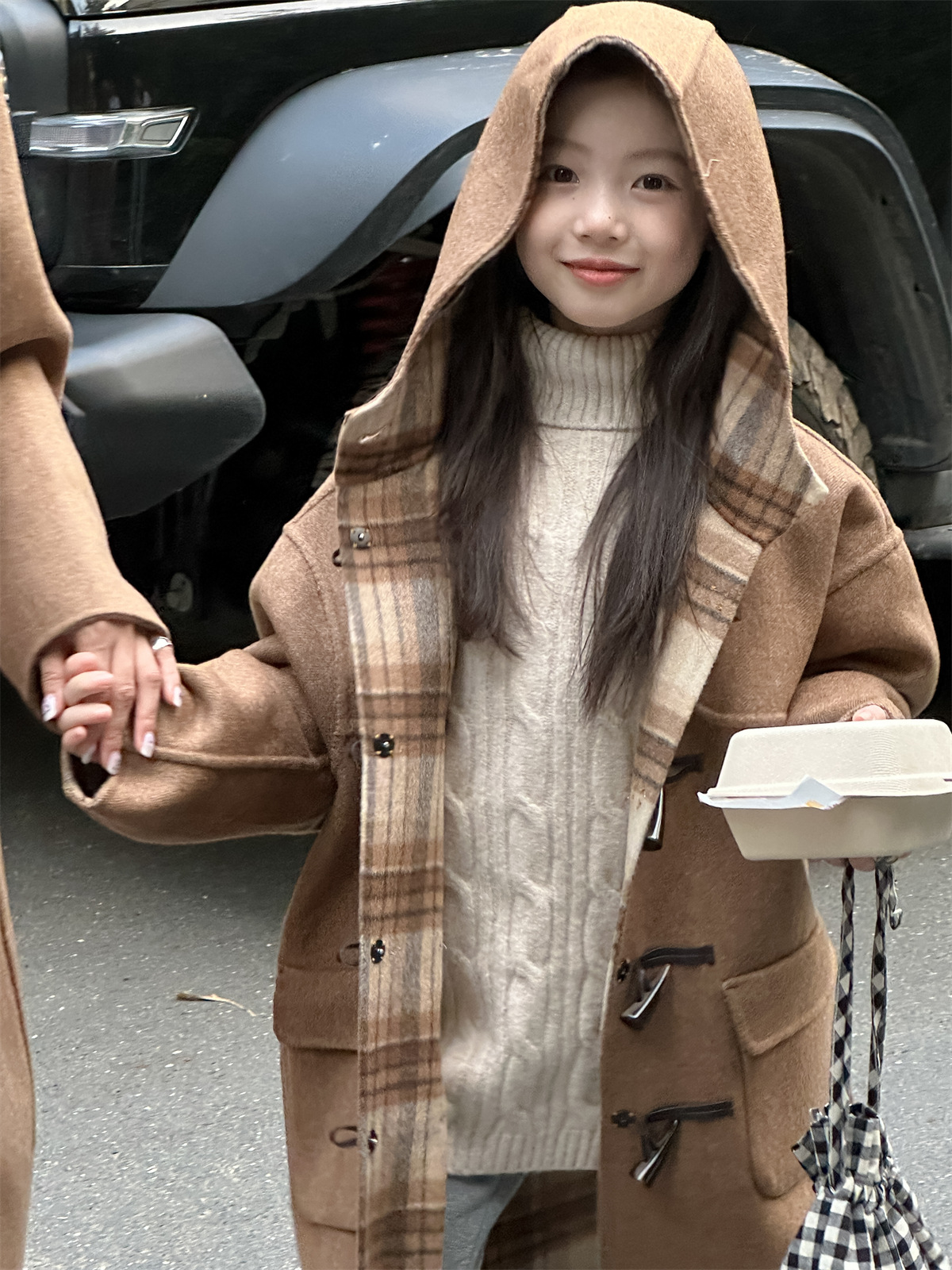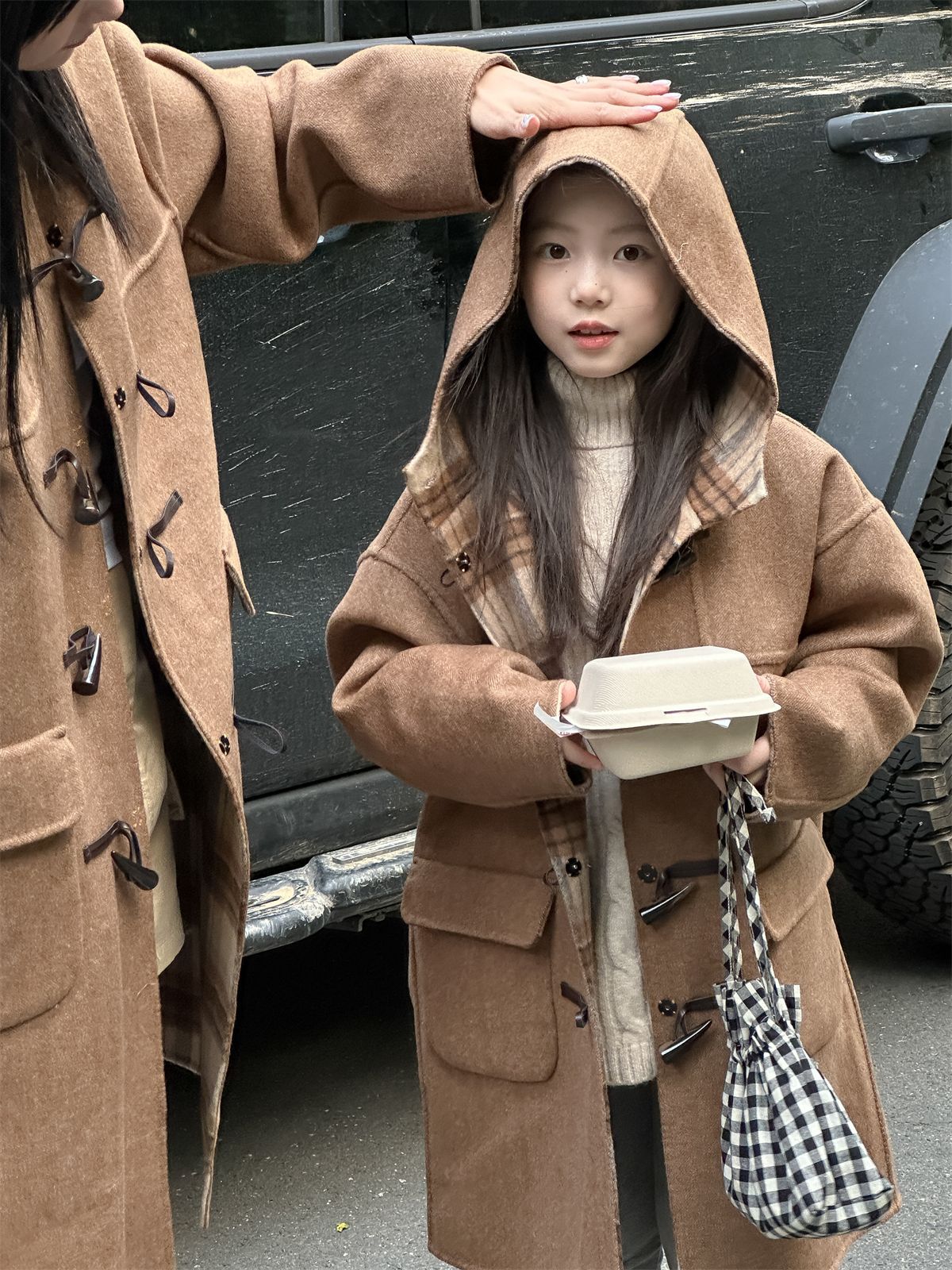 꽃과 어린이 의류 부모-자식 양모 코트 2024 겨울 새로운 양면 모직 코트 모직 코트스토어 가기