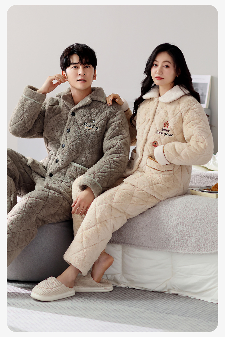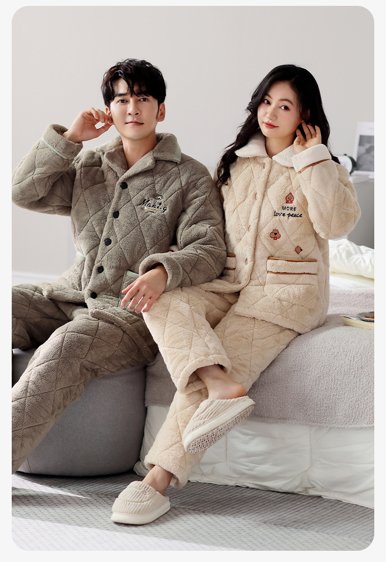 2024 새로운 커플 잠옷 겨울 산호 양털 3 층 코튼 기모 남녀 홈 의류 세트스토어 가기