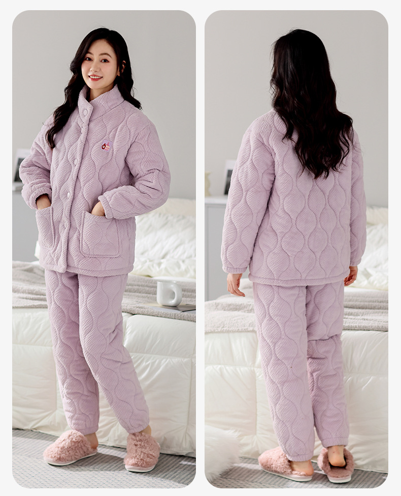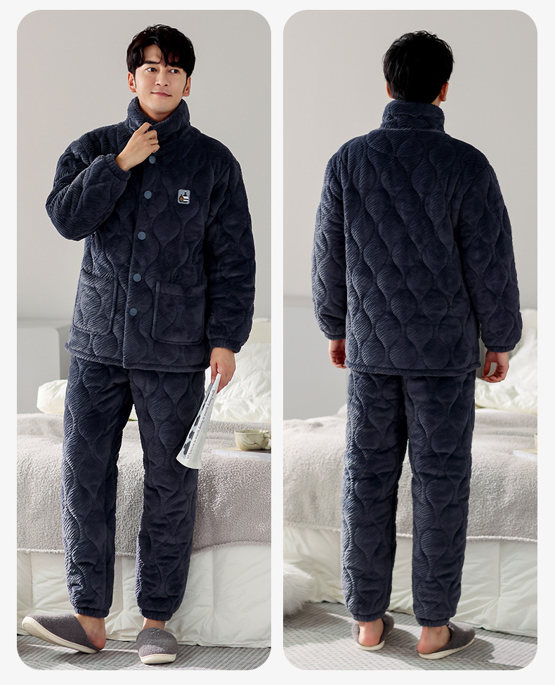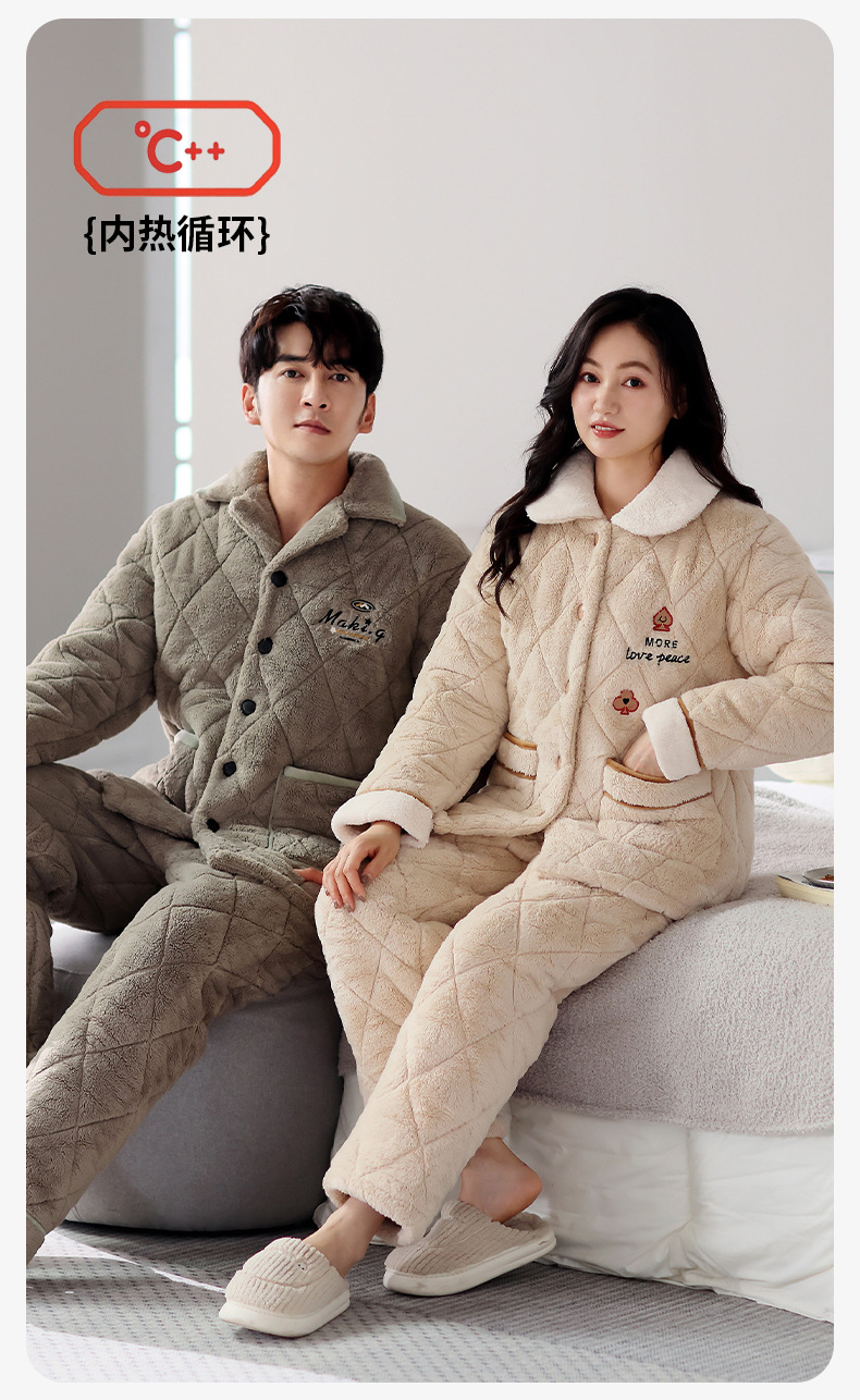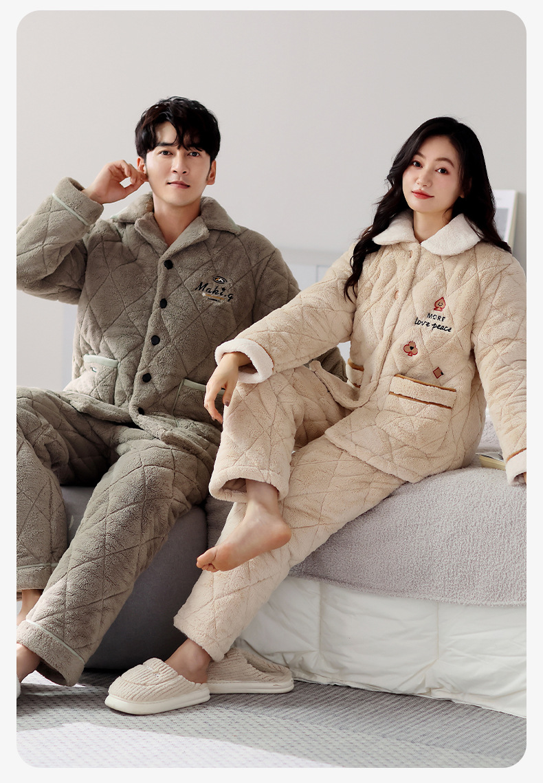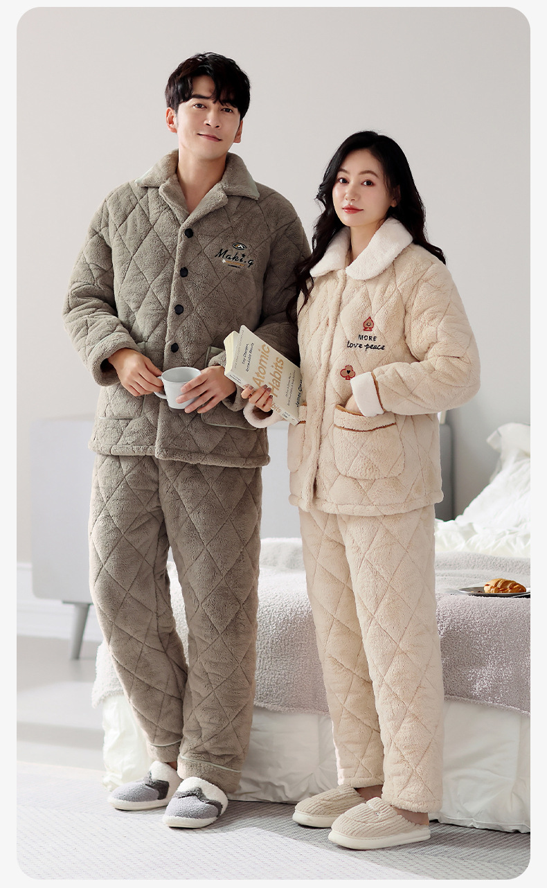 2024 새로운 커플 잠옷 겨울 산호 양털 3 층 코튼 기모 남녀 홈 의류 세트