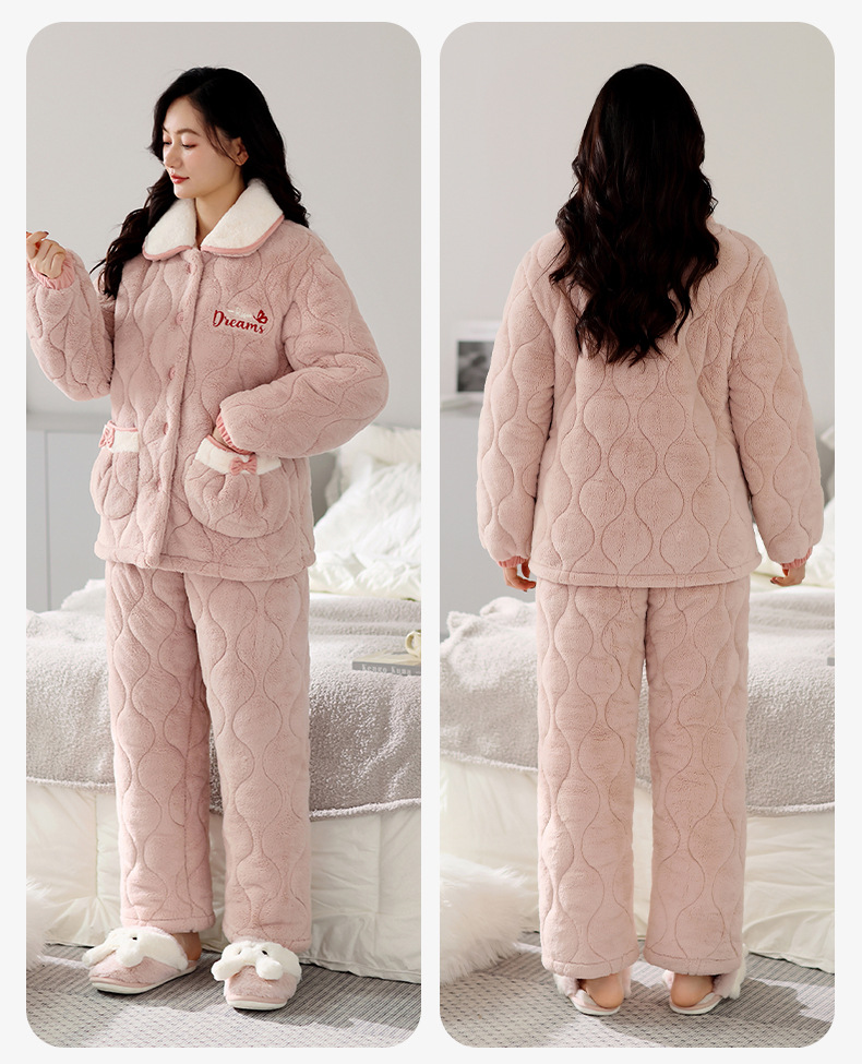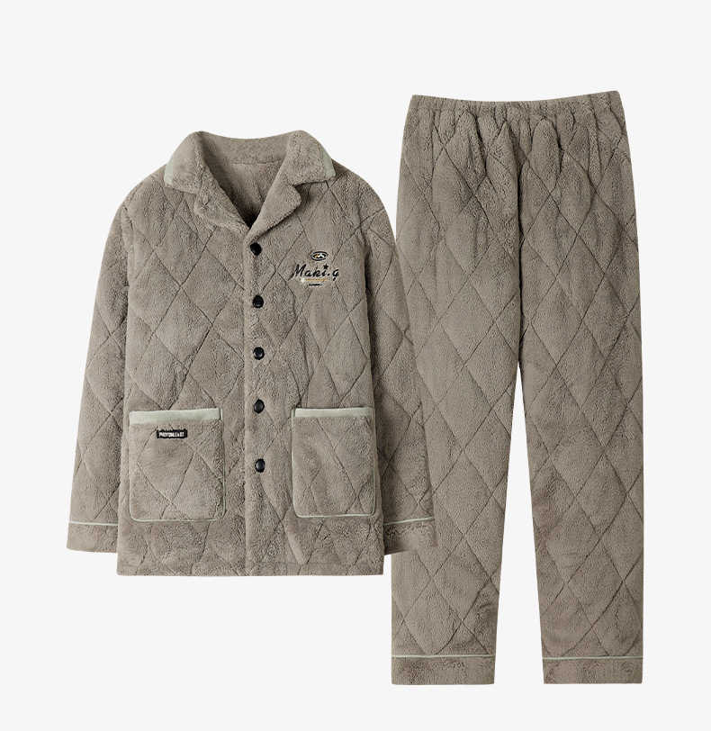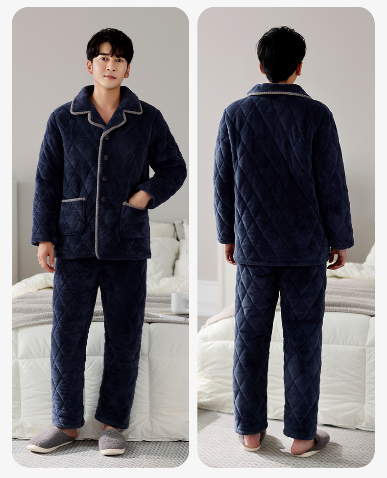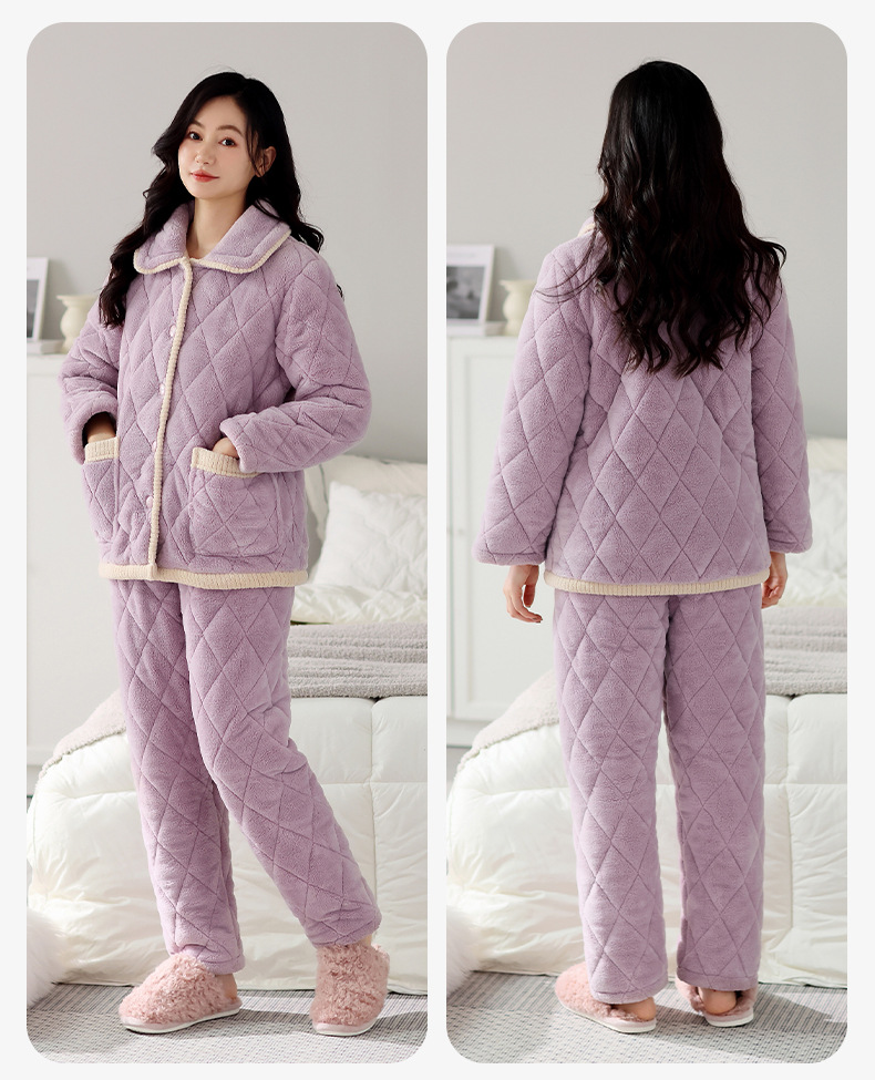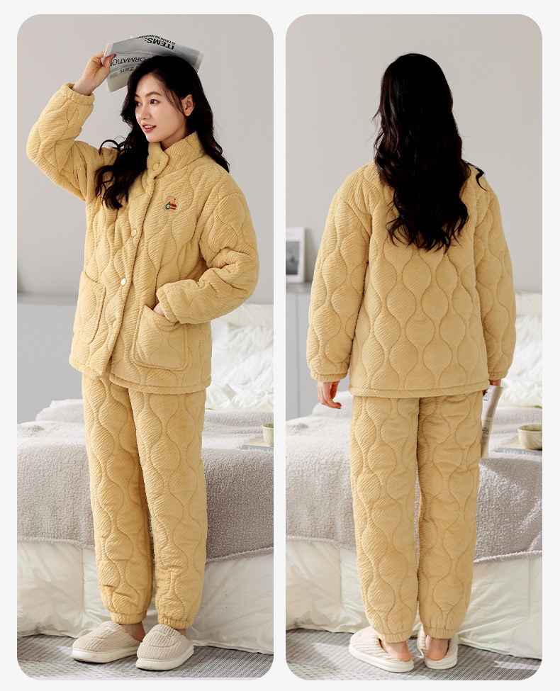 2024 새로운 커플 잠옷 겨울 산호 양털 3 층 코튼 기모 남녀 홈 의류 세트