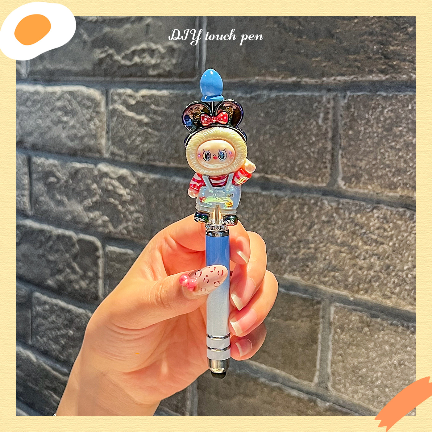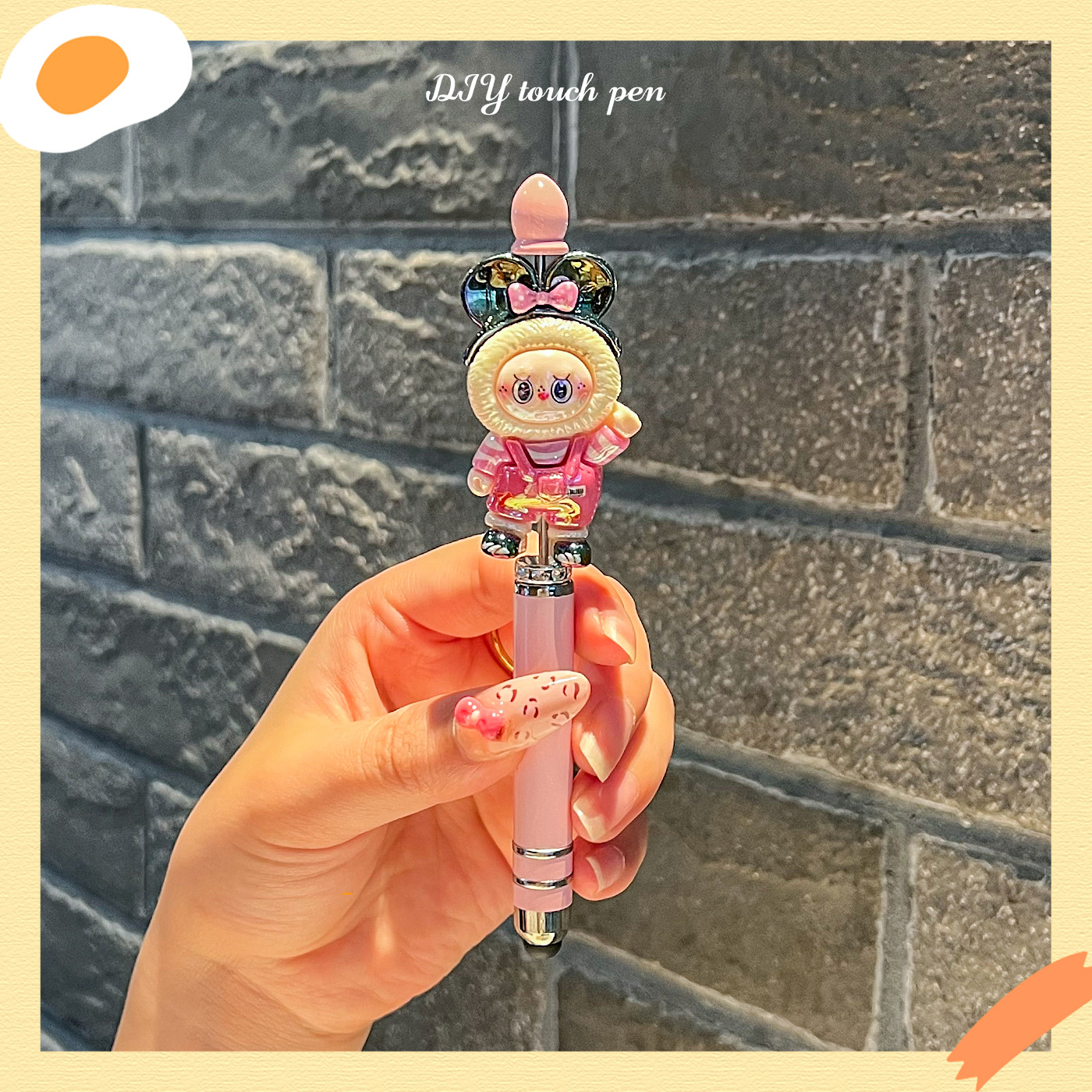 어린이 수제 DIY 휴대폰 비즈 터치펜 라부부 크레용 신짱 학생용 라부부 푸시형 젤 펜
