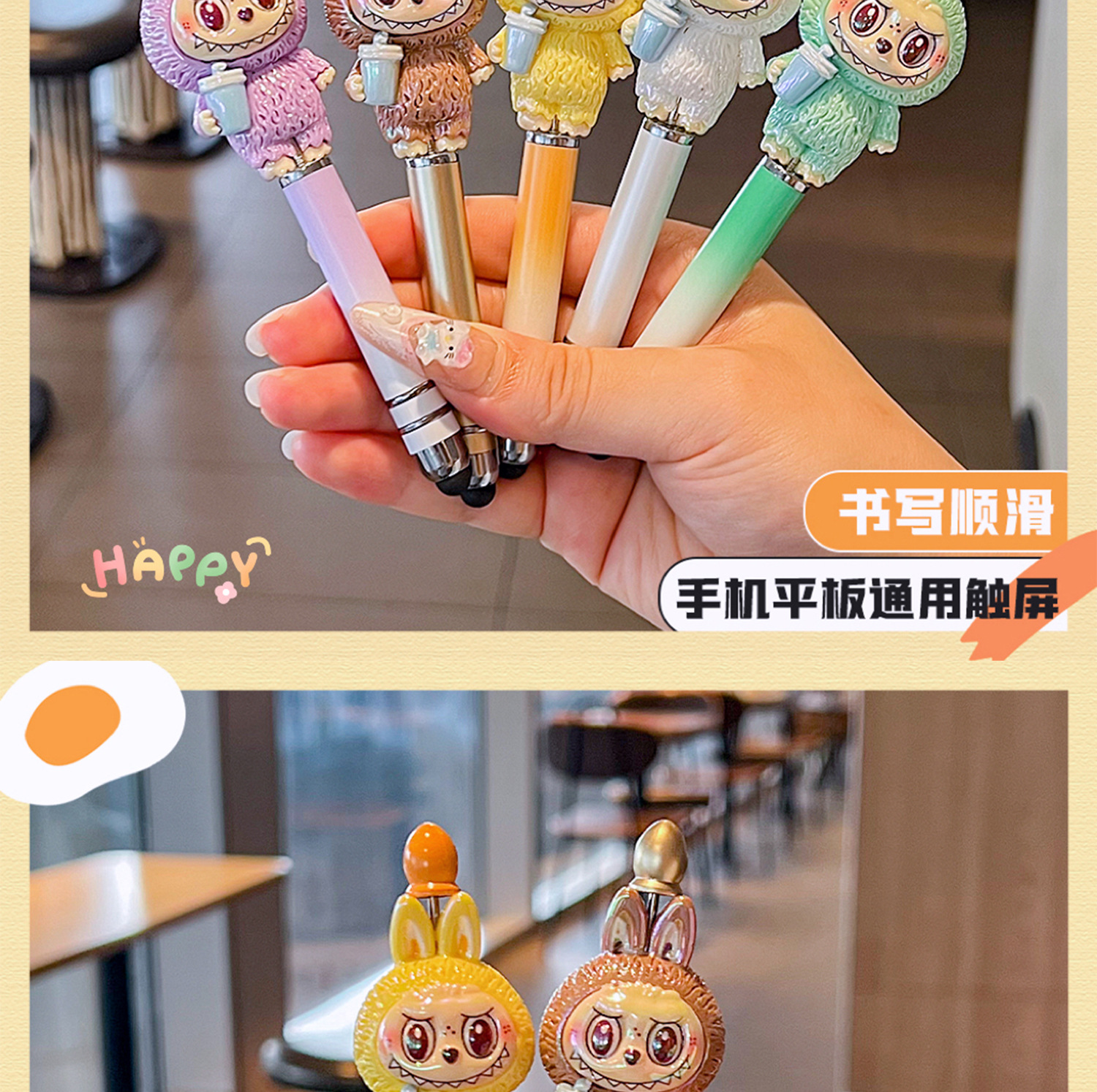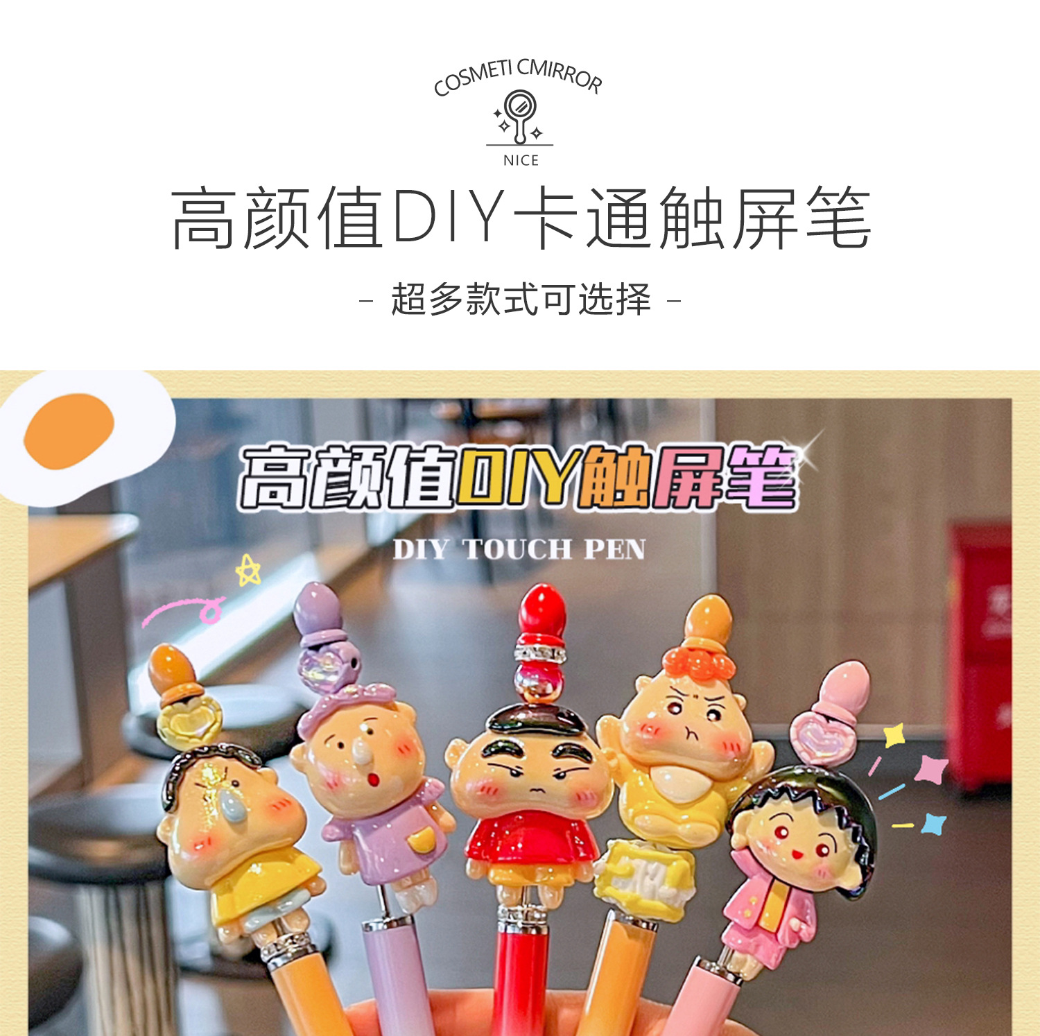 어린이 수제 DIY 휴대폰 비즈 터치펜 라부부 크레용 신짱 학생용 라부부 푸시형 젤 펜스토어 가기
