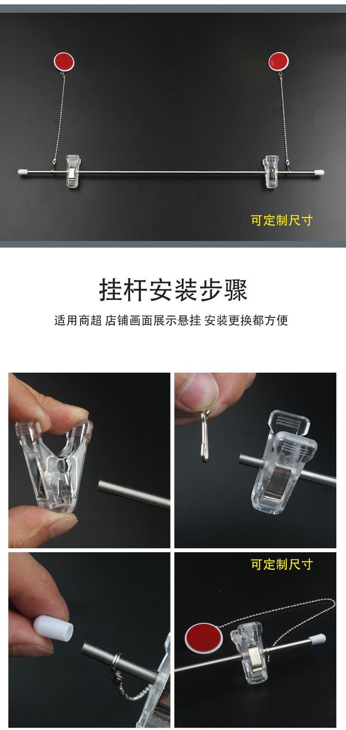 슈퍼마켓 깃발 매달린 극 스테인레스 스틸 KT 보드 광고 클립 60cm 포스터 폴 80cm 후크 알루미늄 합금 매달려 홍지