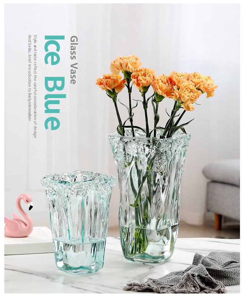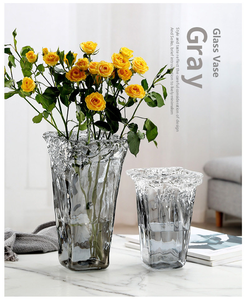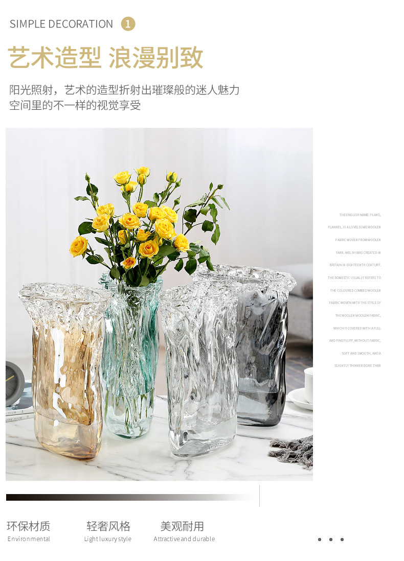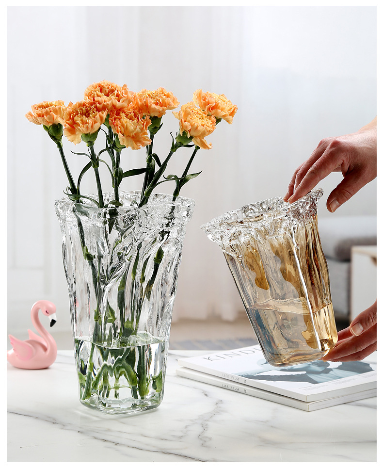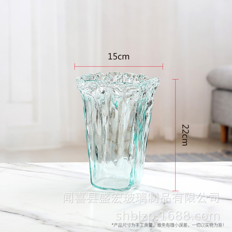 스페인 스타일 꽃잎 입 장식 다채로운 투명 유리 꽃병 장식품 거실 가공 맞춤 제조 업체 도매