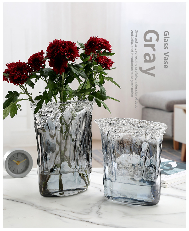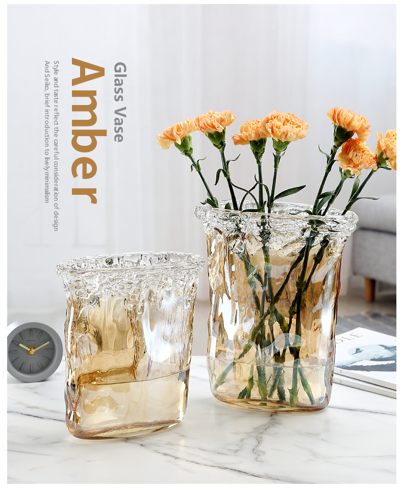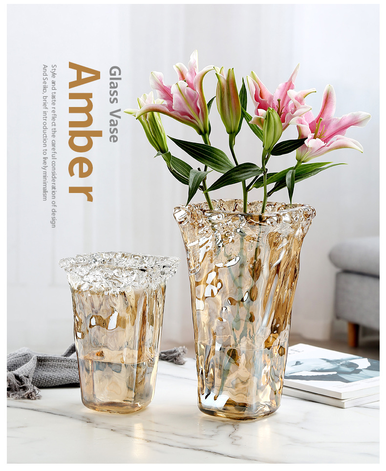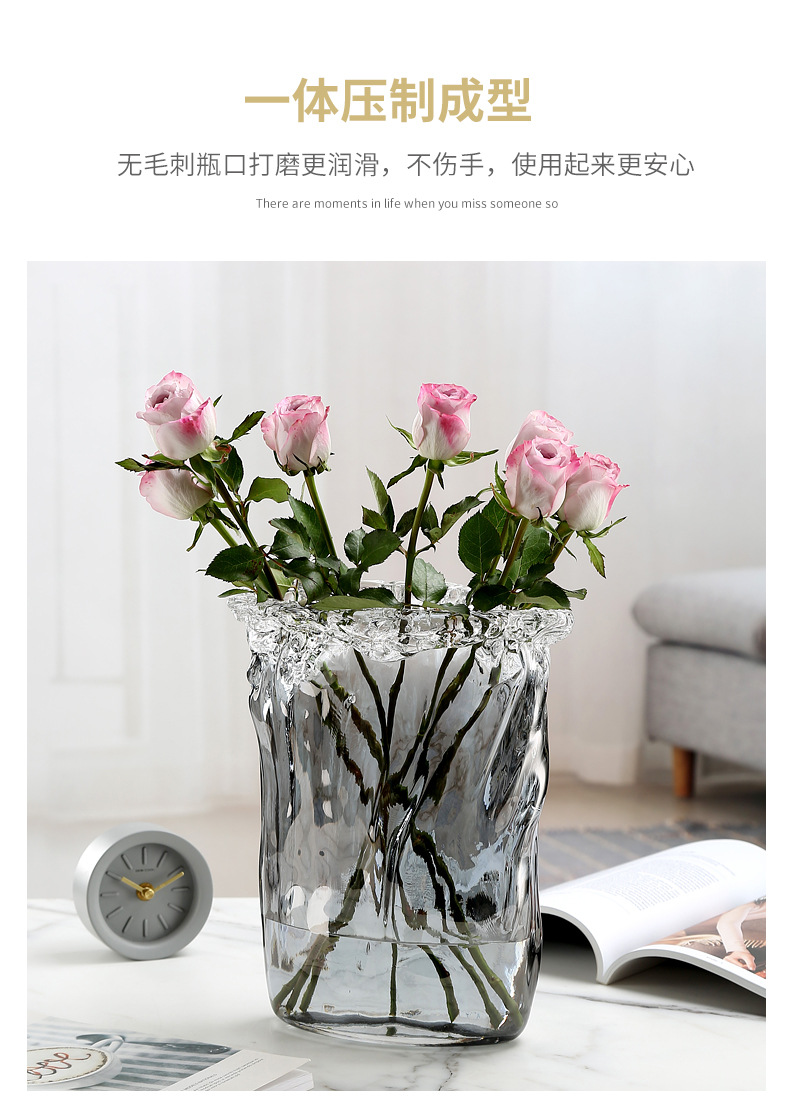 스페인 스타일 꽃잎 입 장식 다채로운 투명 유리 꽃병 장식품 거실 가공 맞춤 제조 업체 도매