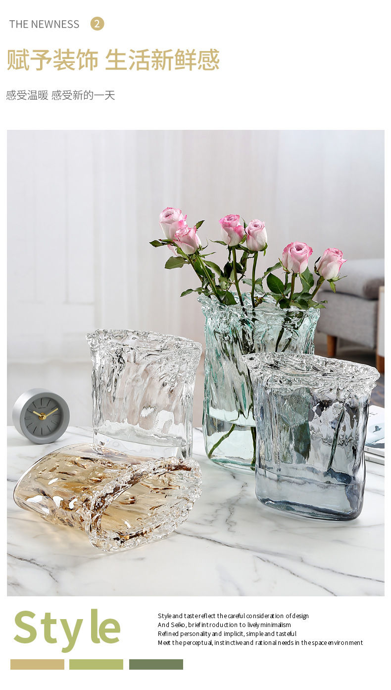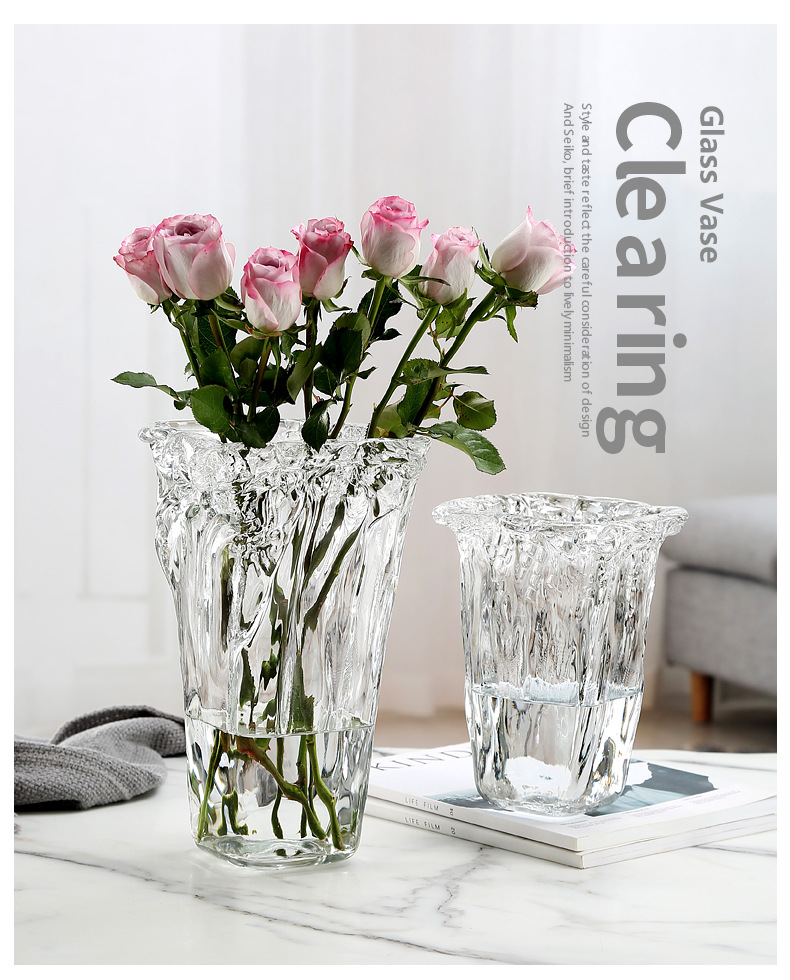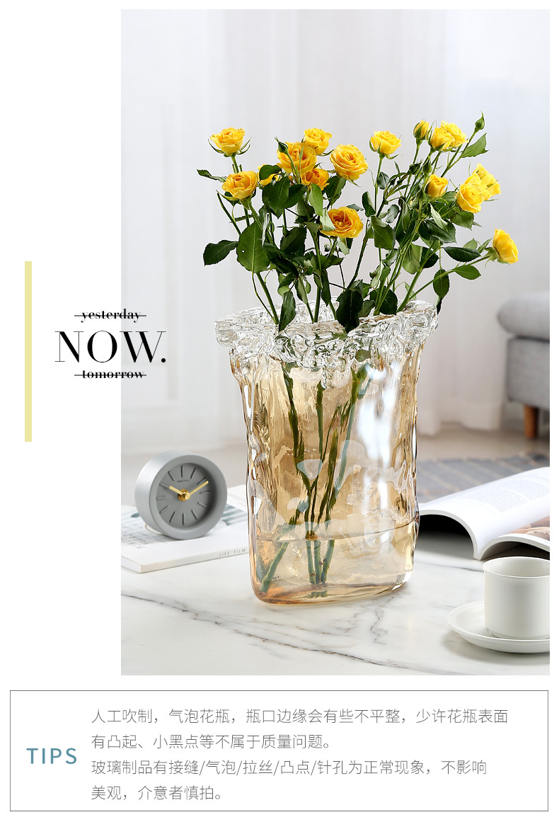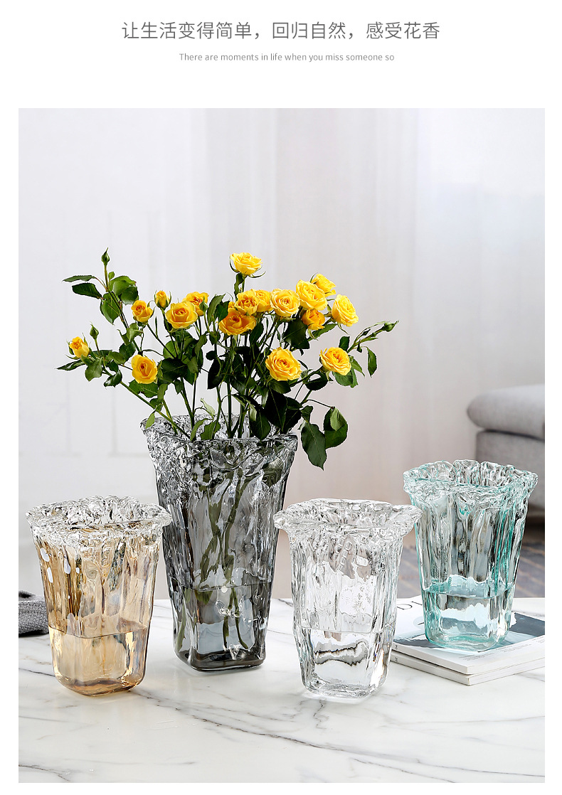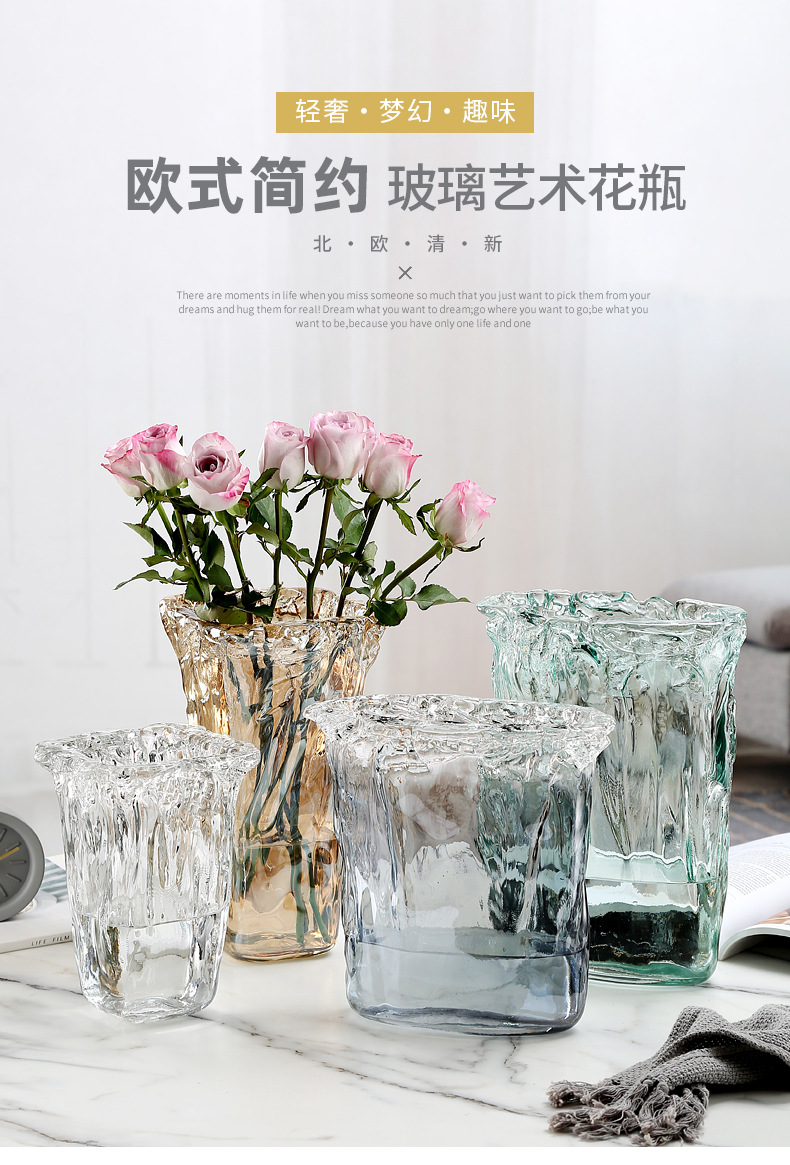 스페인 스타일 꽃잎 입 장식 다채로운 투명 유리 꽃병 장식품 거실 가공 맞춤 제조 업체 도매스토어 가기
