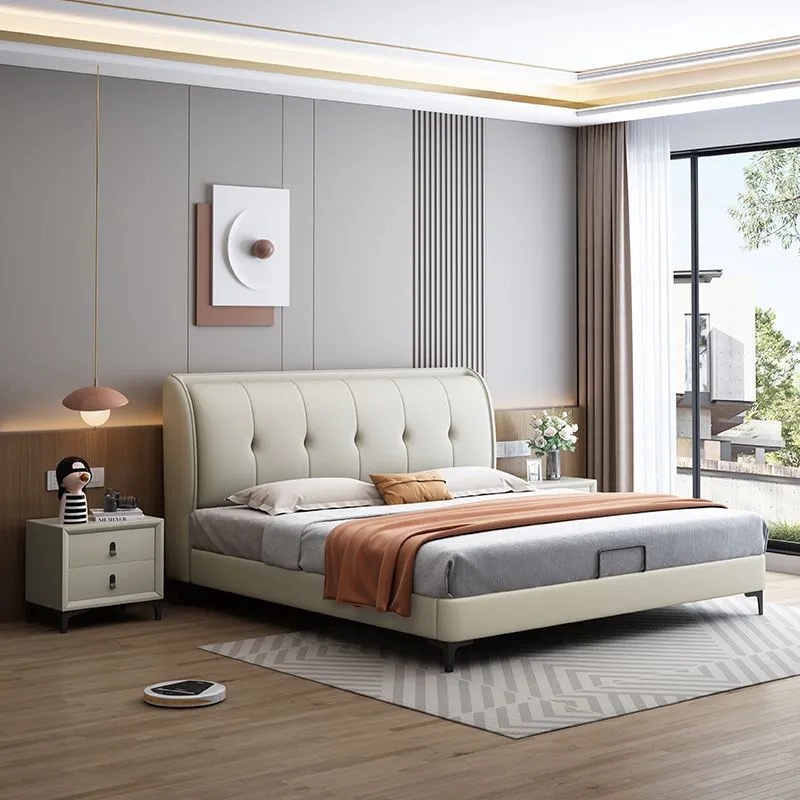 이탈리아 스타일 미니멀리스트 고양이 스크래치 가죽 현대 간단한 가장자리 마스터 침실 더블 쌀 저장 소프트 백 라이트 럭셔리 웨딩 침대 가죽 아트 침대스토어 가기