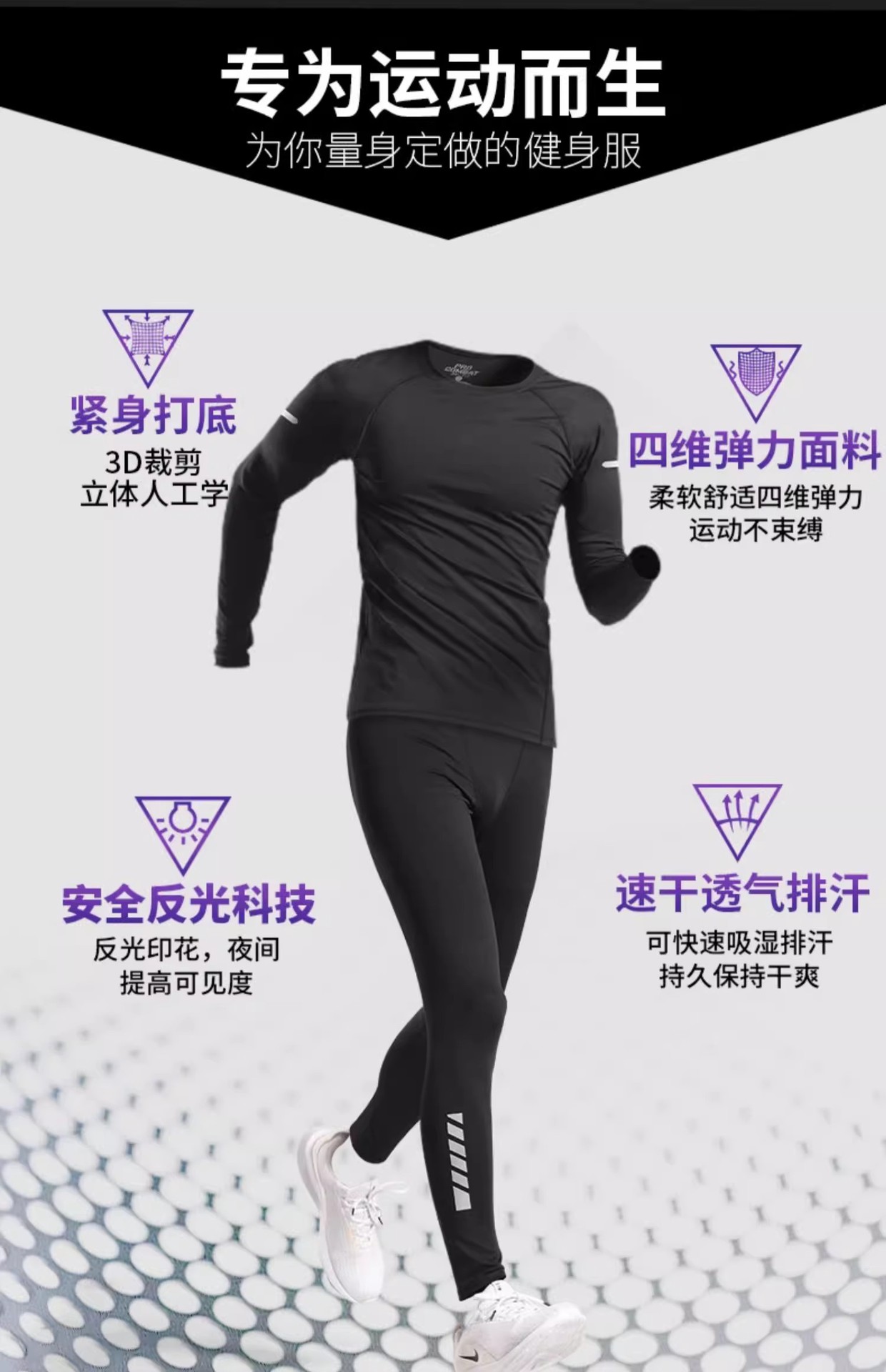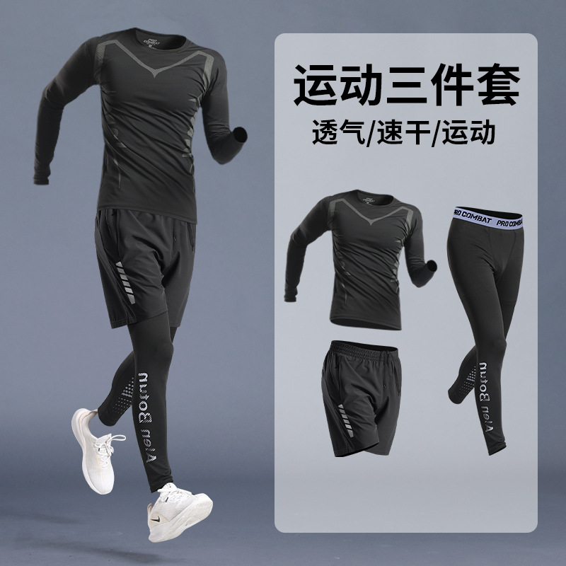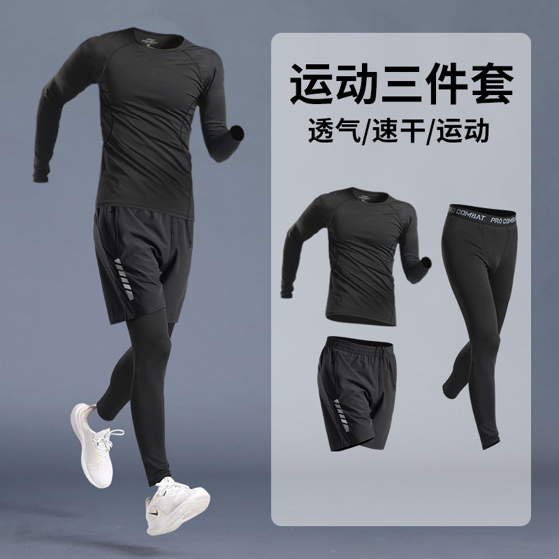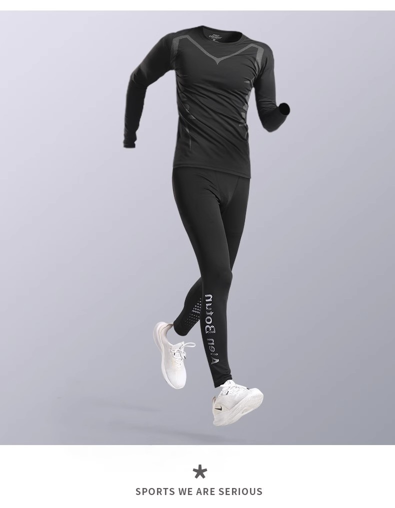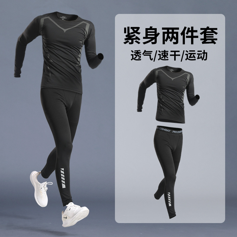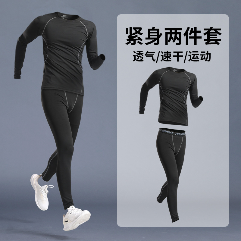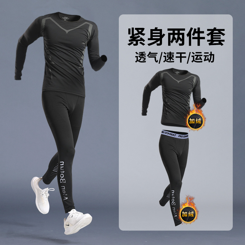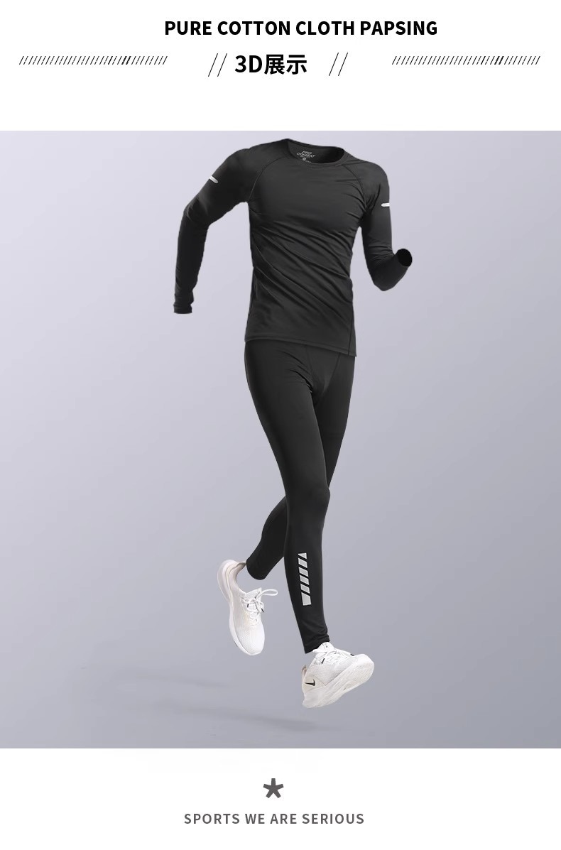 스포츠 스타킹 남자의 빠른 건조 속옷베이스 가을과 겨울 달리기 세트 농구 승마 높은 탄성 피트니스 훈련 긴 소매