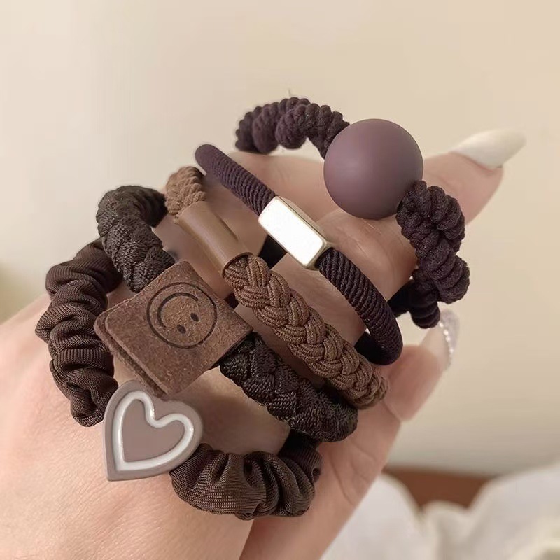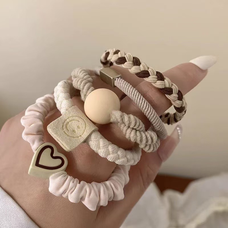 헤어 로프 5 피스 세트 높은 탄성 볼 헤드 말꼬리 머리 로프 머리카락은 고무 밴드 헤어 밴드 크로스 국경 폭발을 해치지 않습니다.스토어 가기