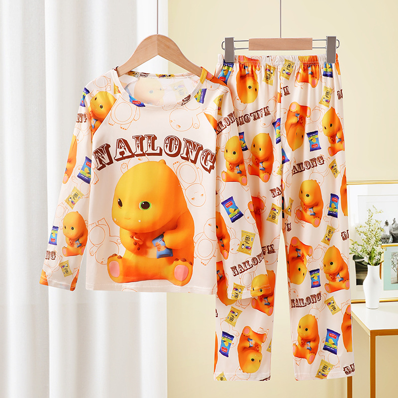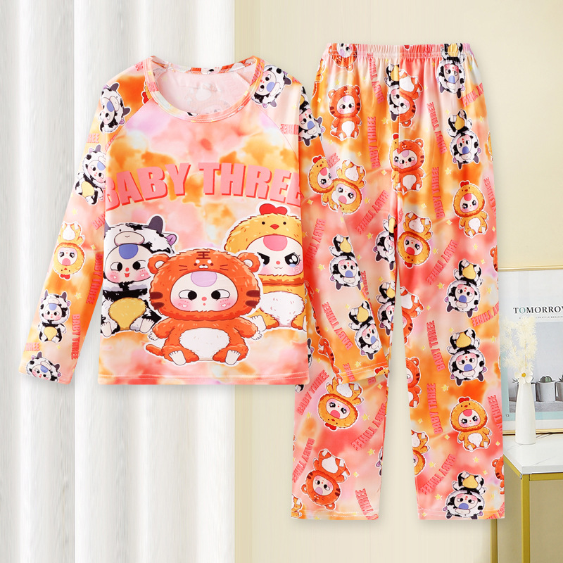 국경을 넘나 드는 소녀 잠옷 2024 년 새 얇은 긴팔 소년 세트 어린이 및 소녀 중대형 어린이 가정 옷