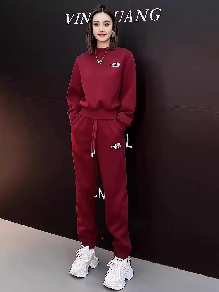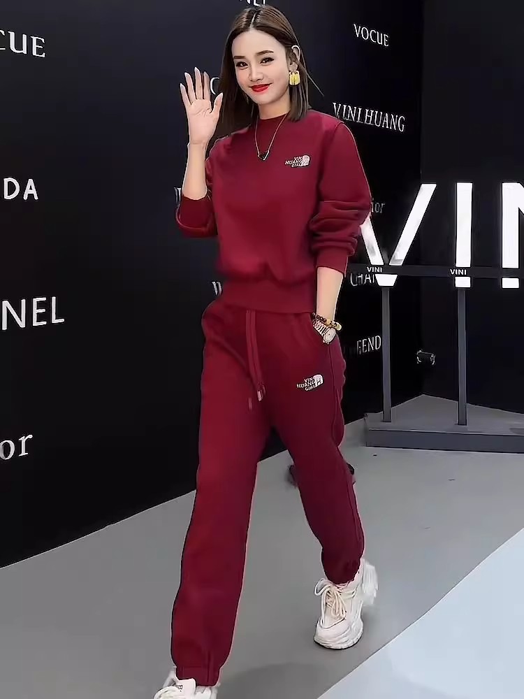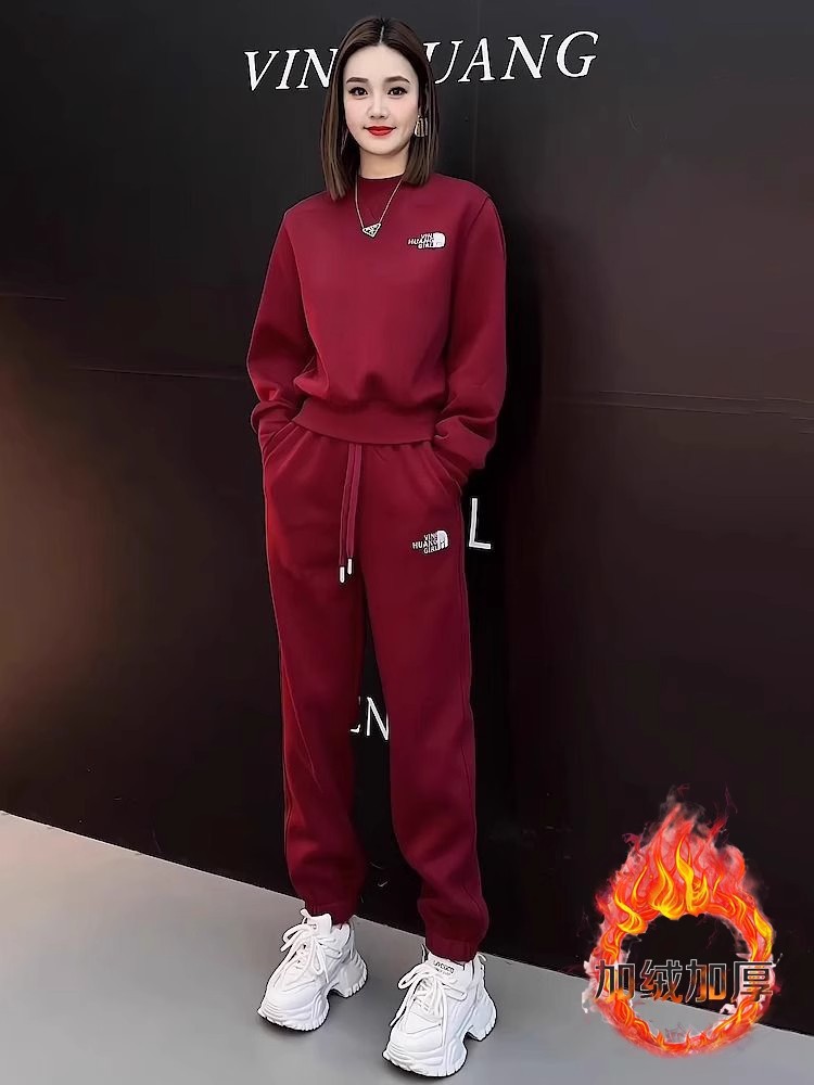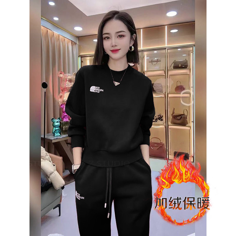 한국식 라이트 럭셔리 하이 엔드 웨스턴 스타일 캐주얼 세트 여성 2024 가을 및 겨울 새로운 두꺼운 땀 캐주얼 바지 투피스 세트스토어 가기