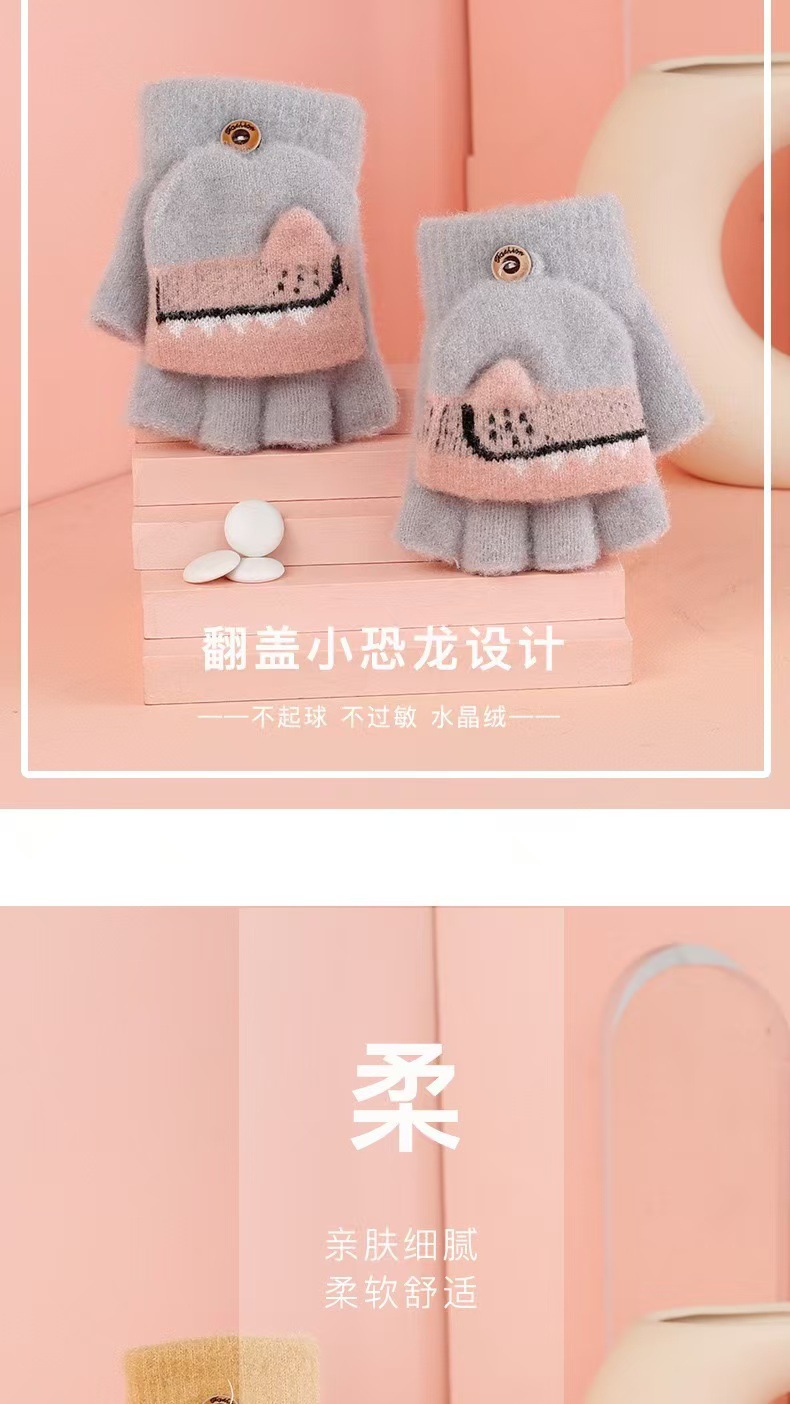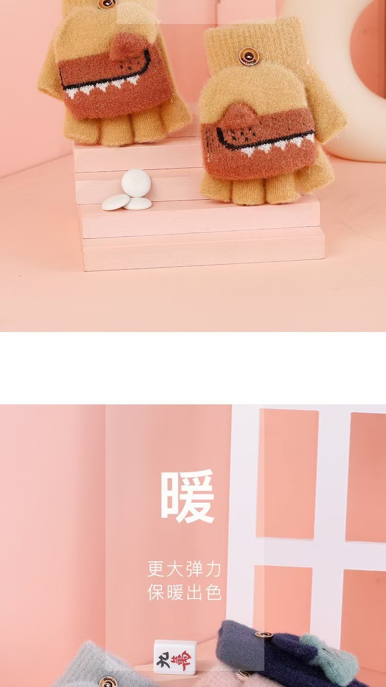 소년을위한 맞춤형 다섯 손가락 플립 어린이 장갑 새로운 두꺼운 만화 공룡 아기 소녀 양모 니트 반 손가락 장갑스토어 가기