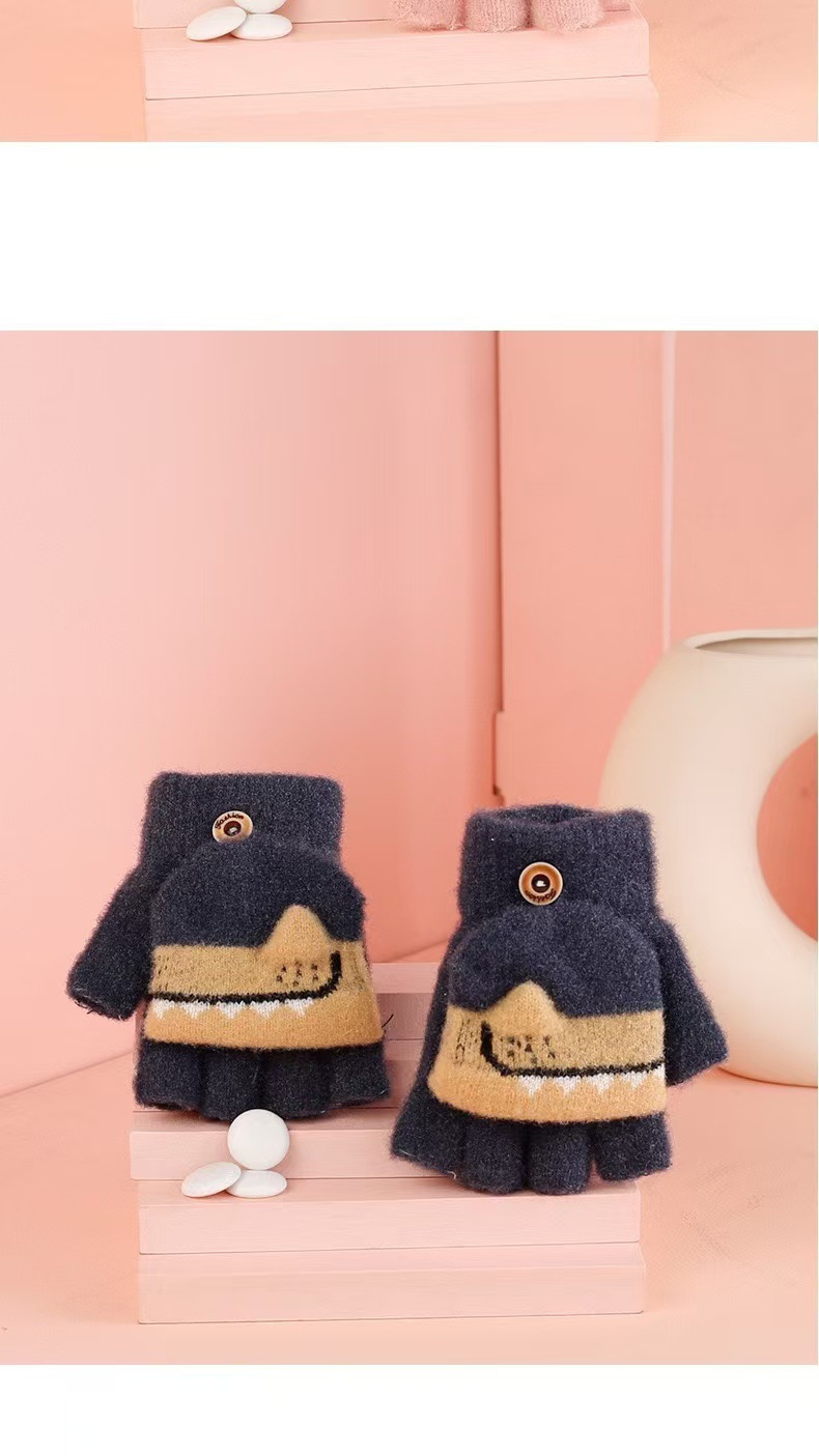 소년을위한 맞춤형 다섯 손가락 플립 어린이 장갑 새로운 두꺼운 만화 공룡 아기 소녀 양모 니트 반 손가락 장갑
