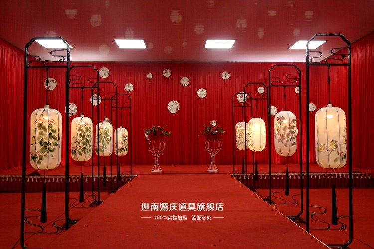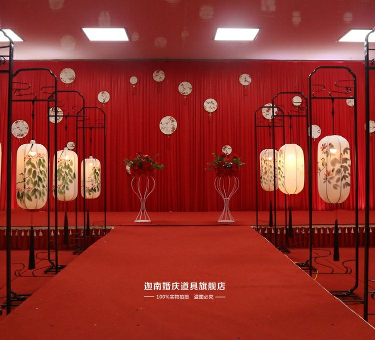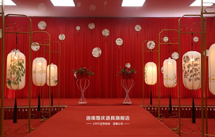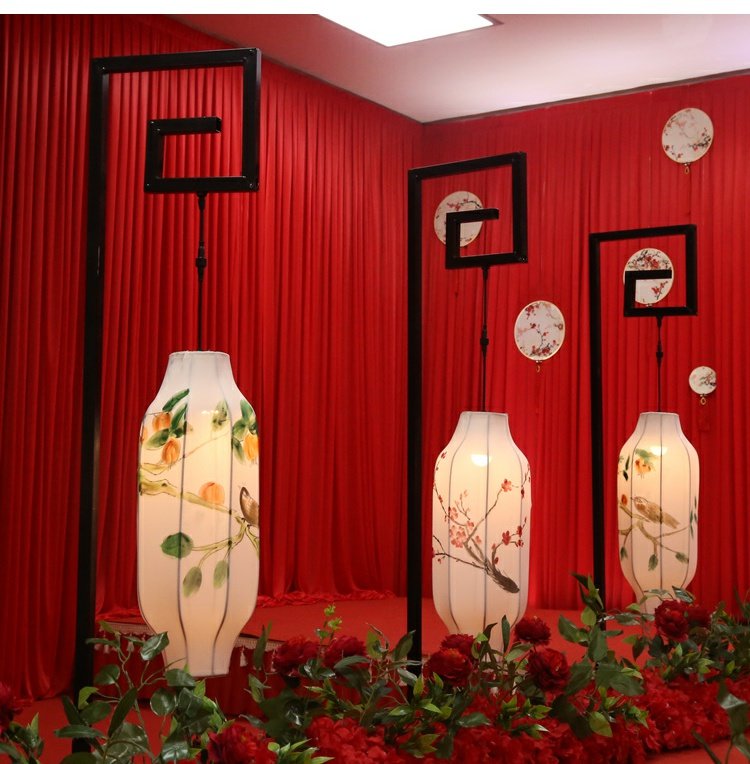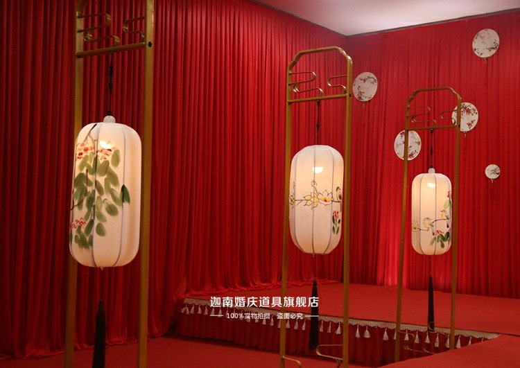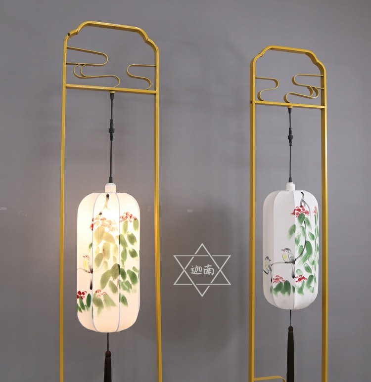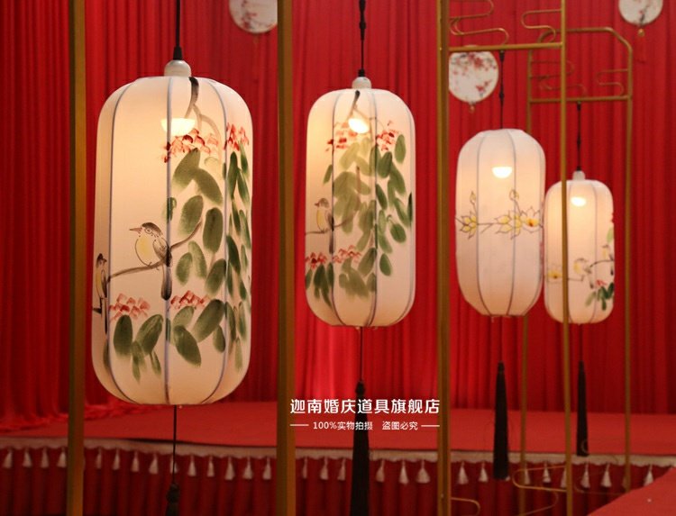 新款手绘弯钩灯笼路引中国风花鸟灯宫灯中式T台摆件创意婚庆道具