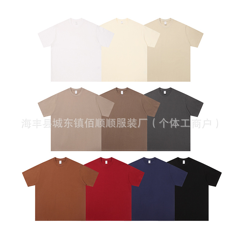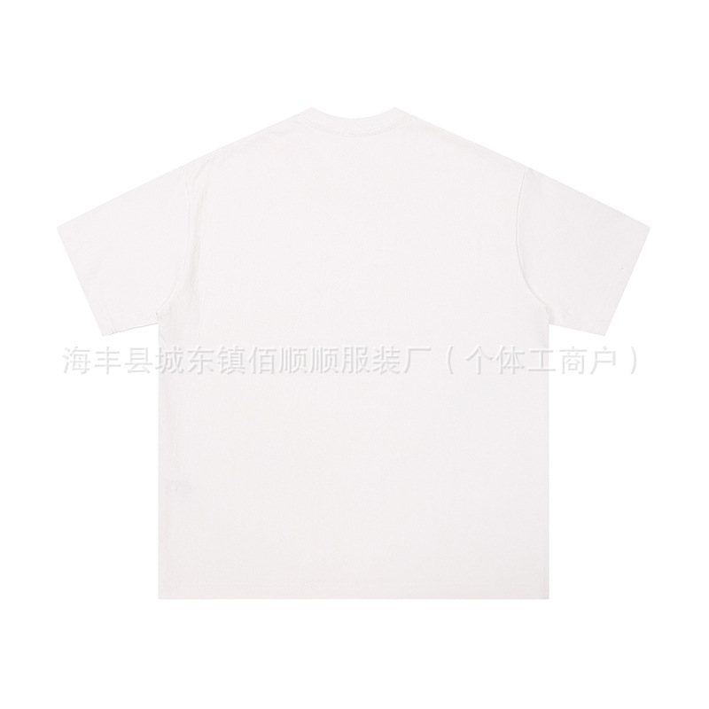 405g 무거운 무게 순수한 흰색면 짧은 소매 티셔츠 남성과 여성 미국 오버 시즈 작은 목선 느슨한 학생 도매스토어 가기