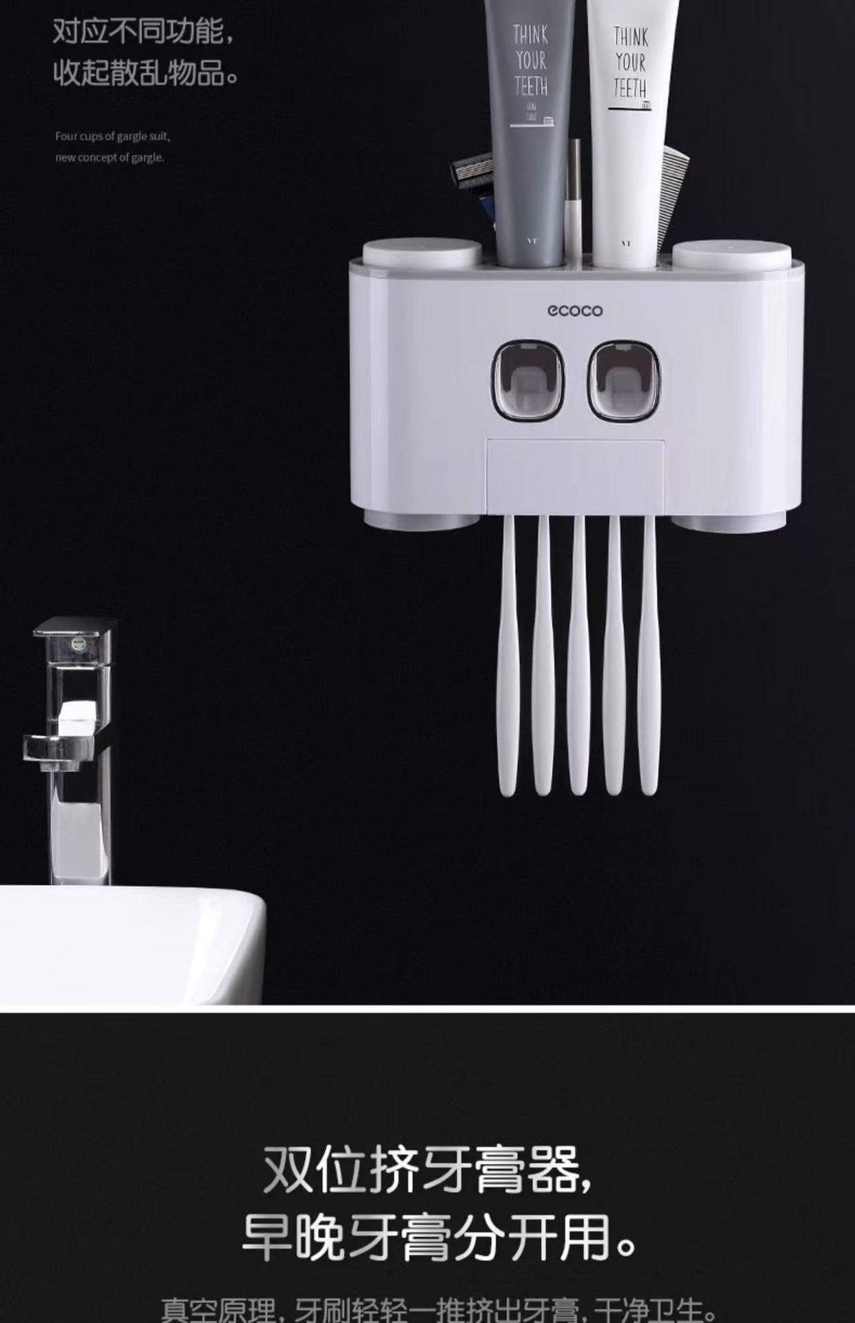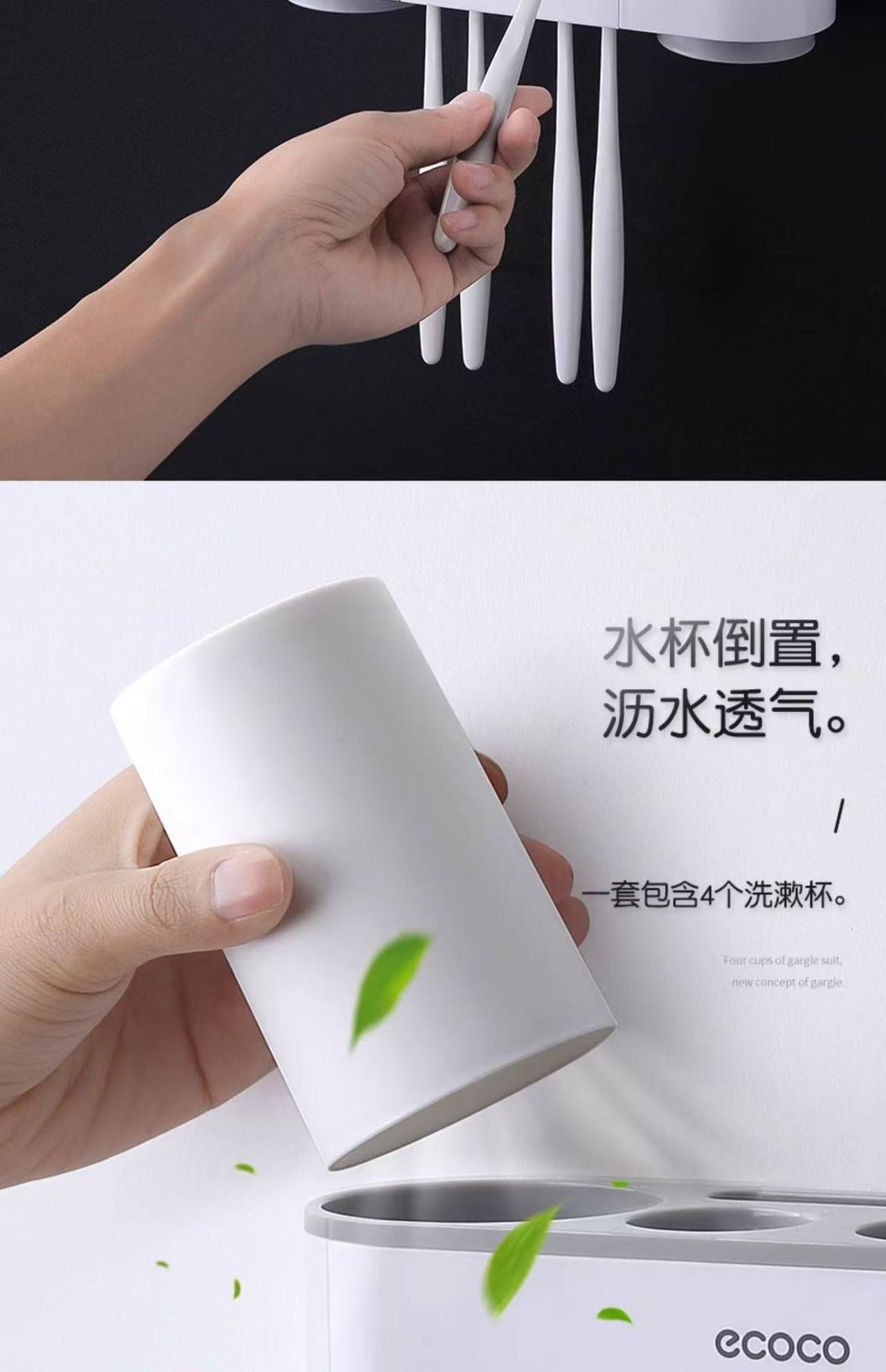 이코코 칫솔걸이, 벽걸이형 무펀치 구강청결제 컵, 양치컵, 벽걸이형 흡착식 칫솔세트, 못 없음