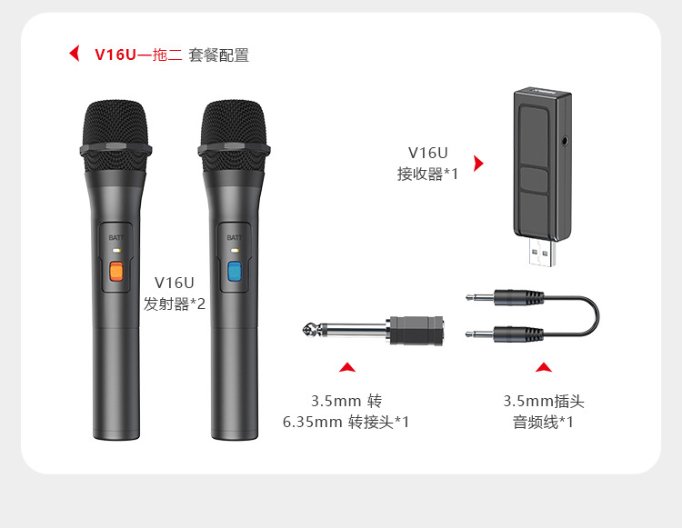• V16U-2/블랙/VHF 원 드래그 20k 에너지 무선 마이크