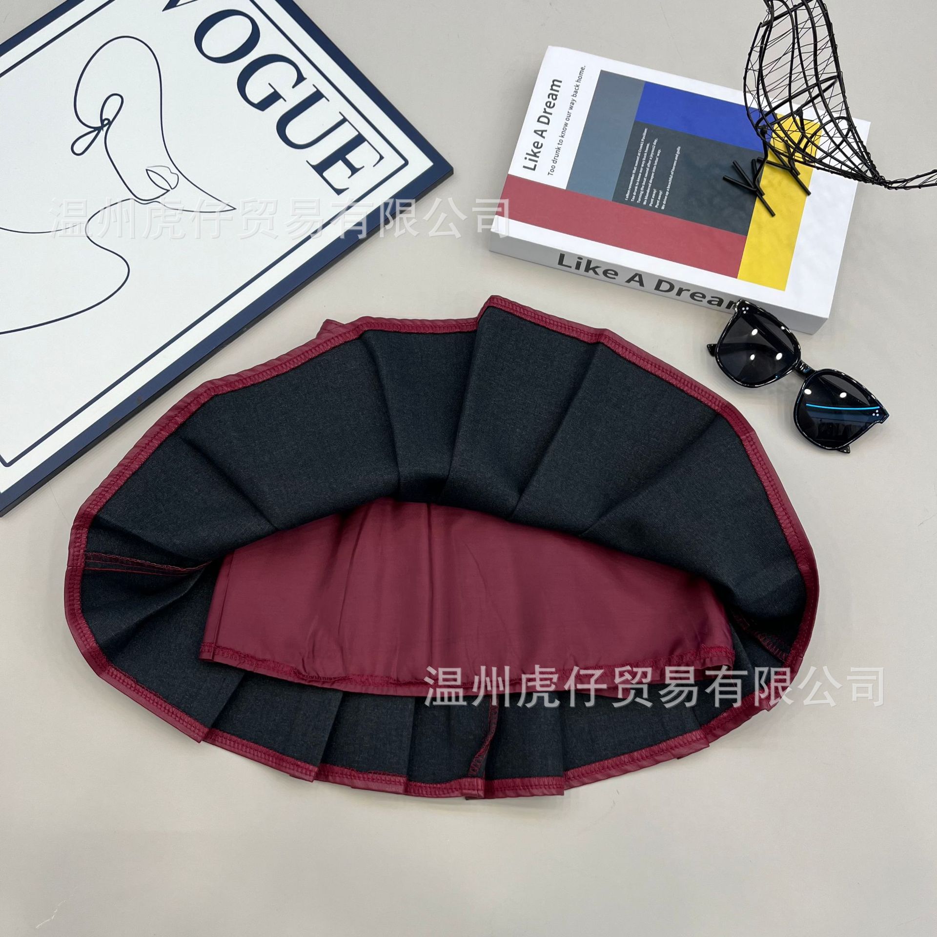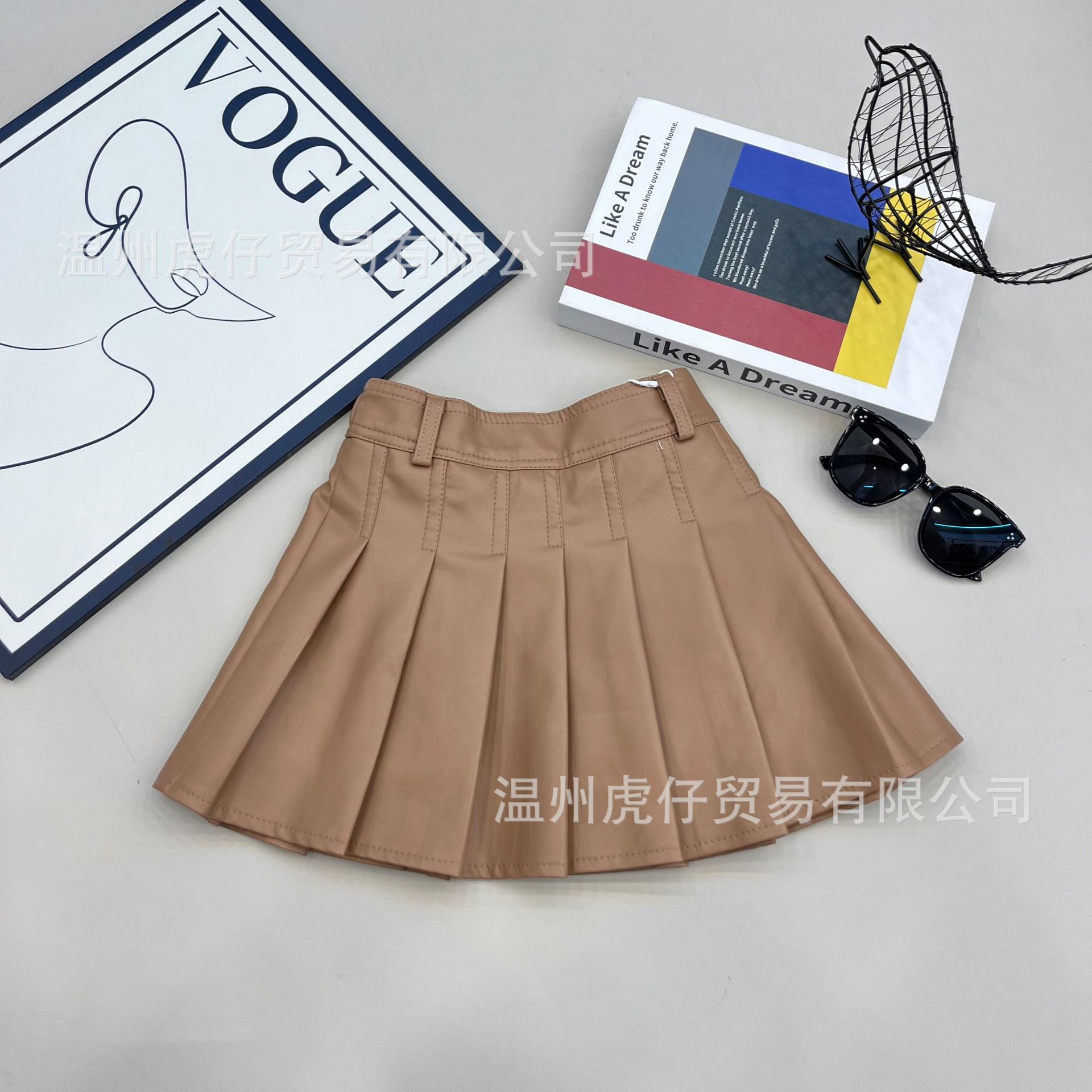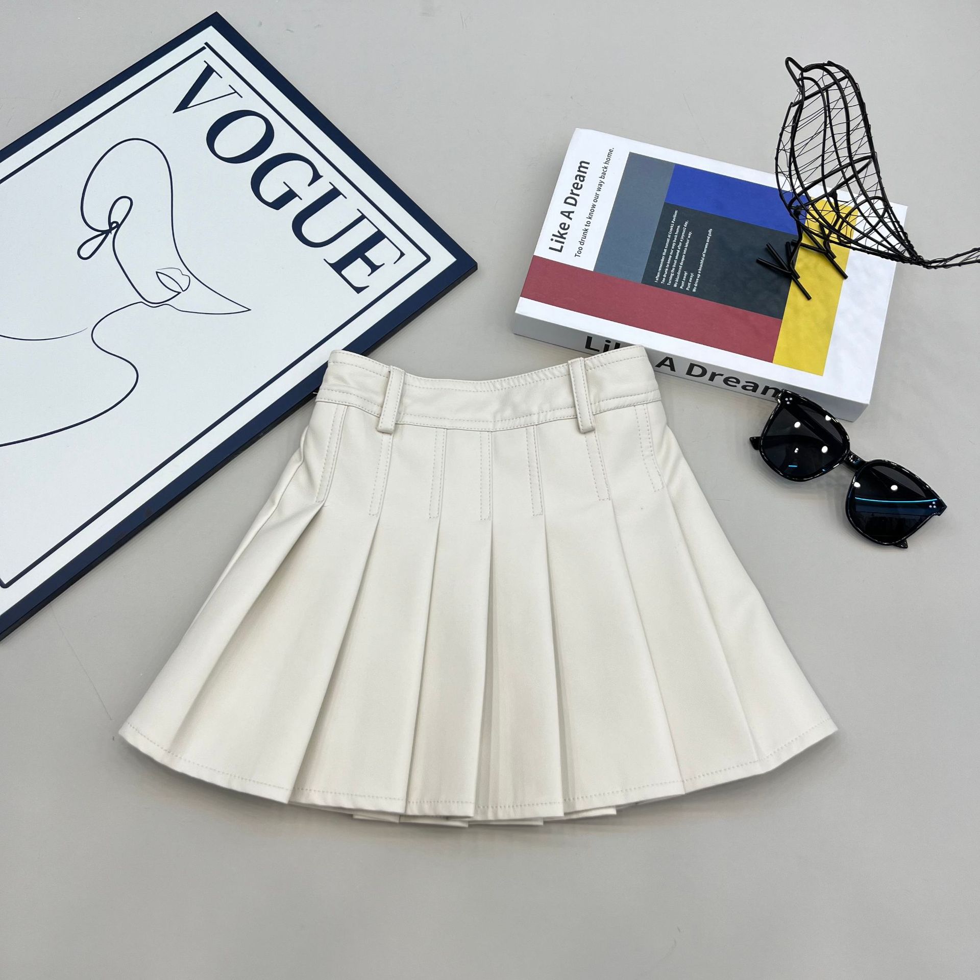 2024 여자 가죽 치마 활기찬 캠퍼스 스타일 대외 무역 패션 주름 치마 단색 새로운 짧은 치마 봄과 가을 도매