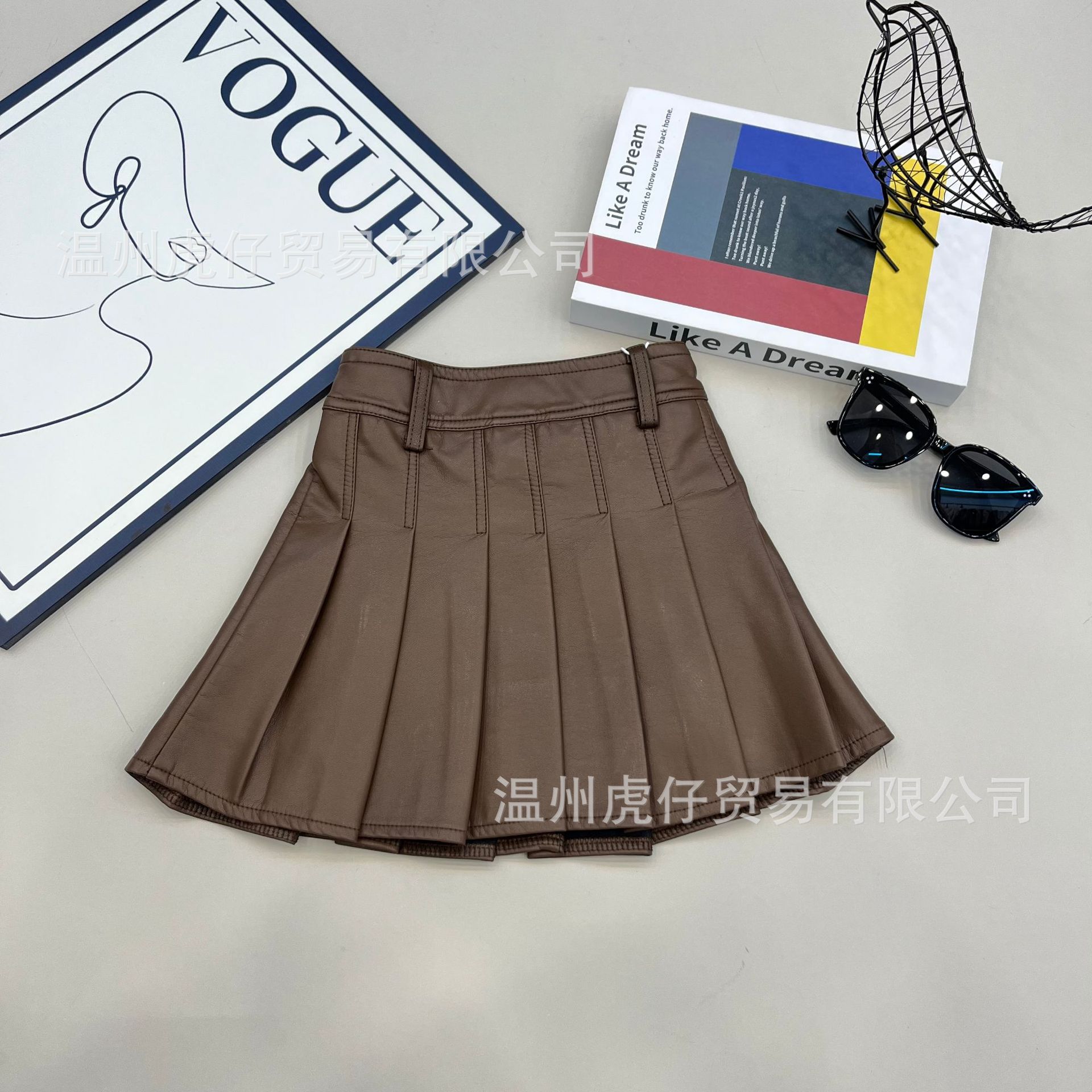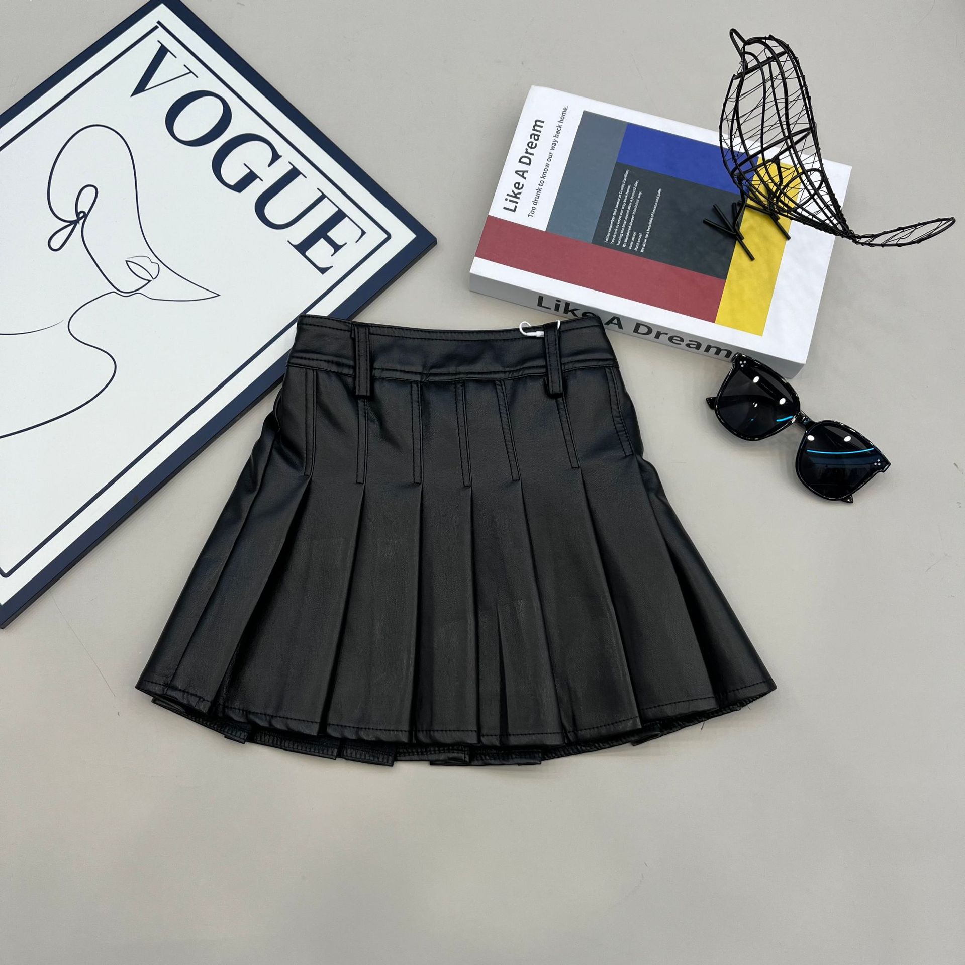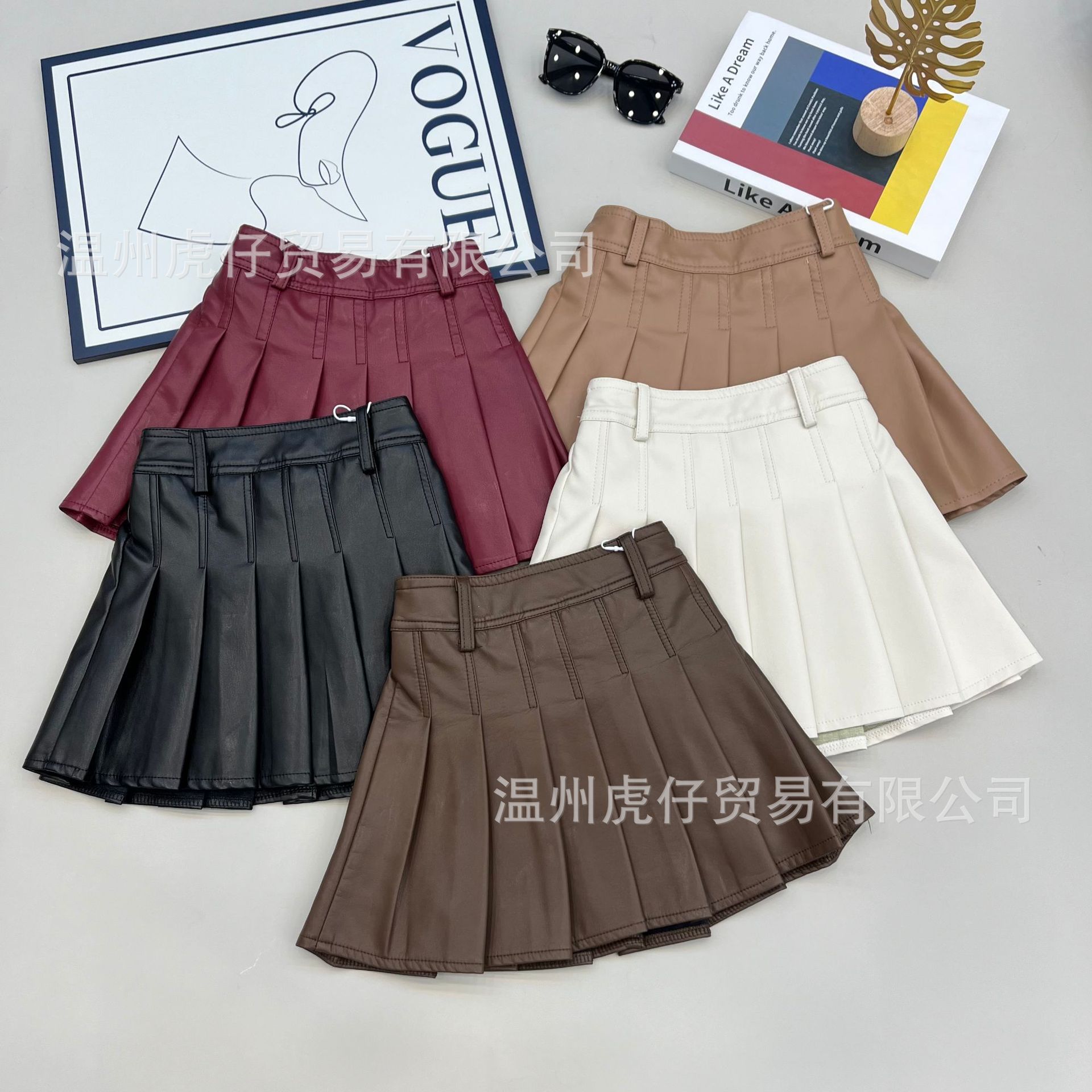 2024 여자 가죽 치마 활기찬 캠퍼스 스타일 대외 무역 패션 주름 치마 단색 새로운 짧은 치마 봄과 가을 도매스토어 가기