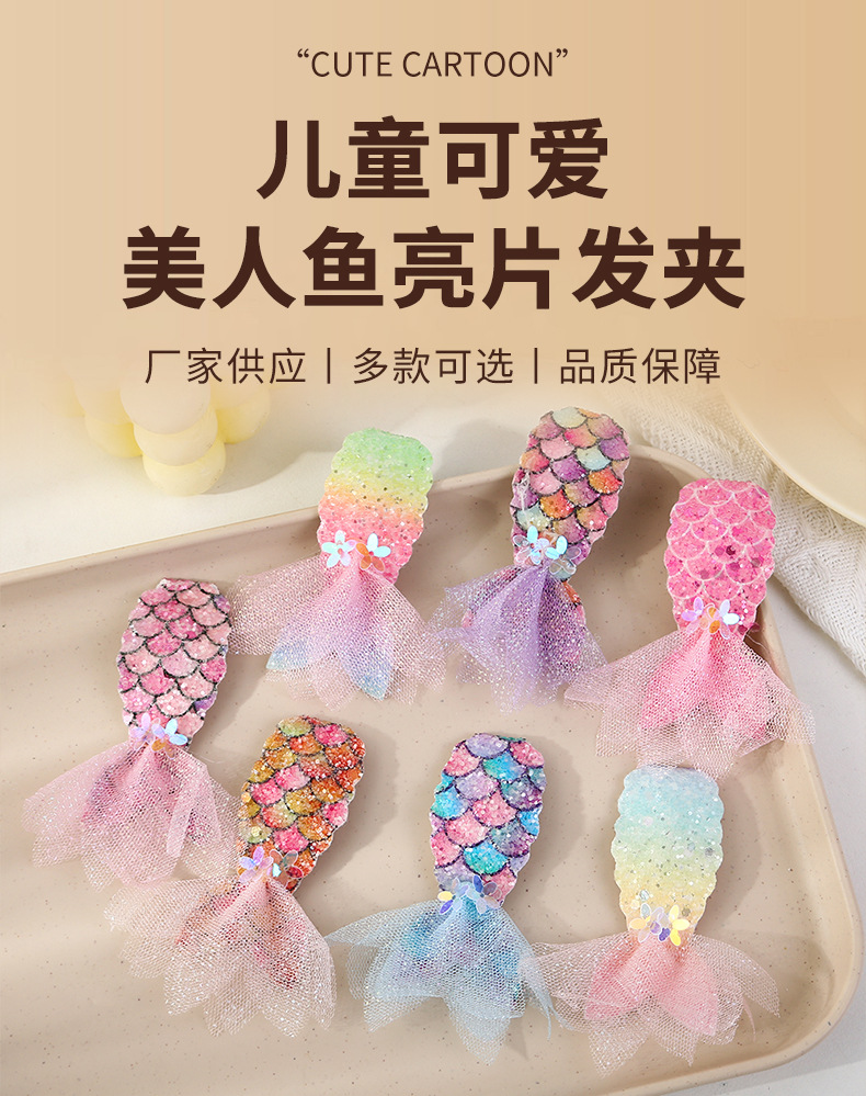 어린이 귀여운 인어 속편 BB 머리핀 BB 클립 어린 소녀 공주 깨진 머리핀 어린이 머리 머리옷