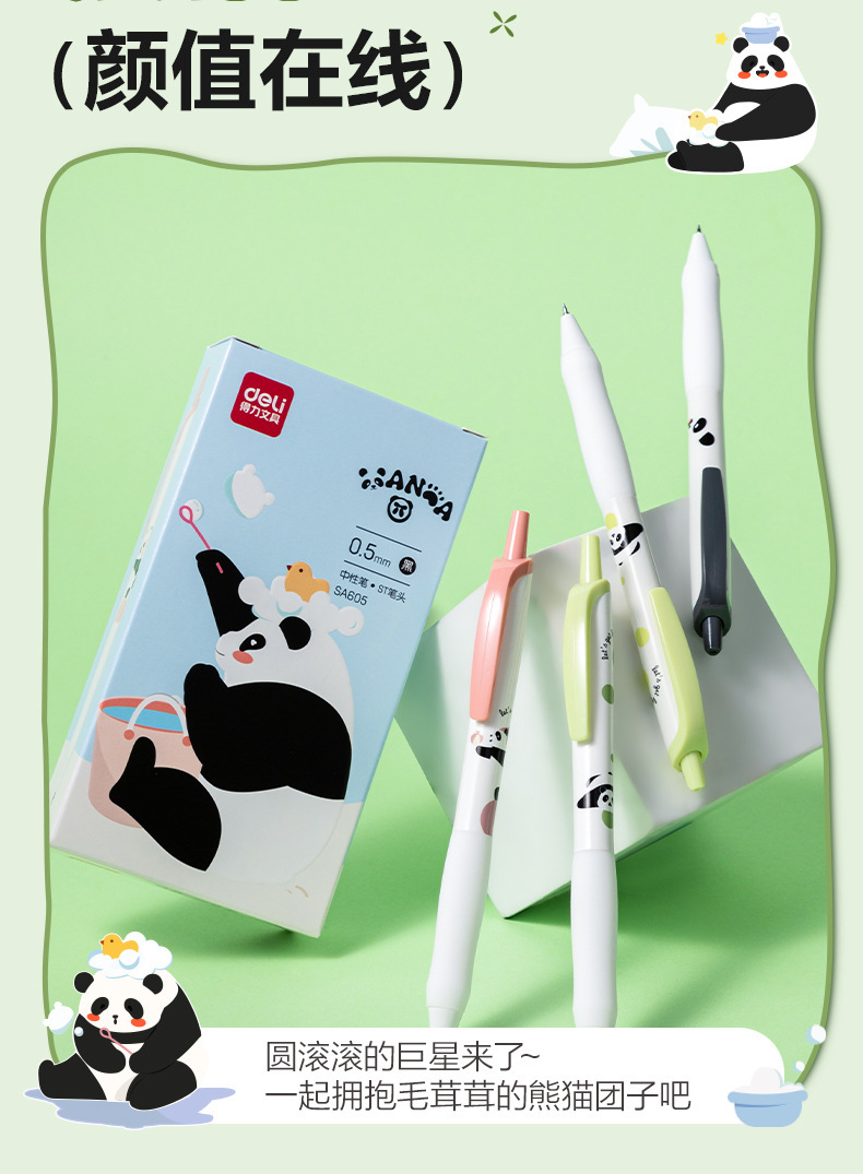 델리 SA605 팬더 빠른 건조 프레스 학생 젤 펜 0.5mmST 펜 학생 귀여운 사인 펜 블랙스토어 가기