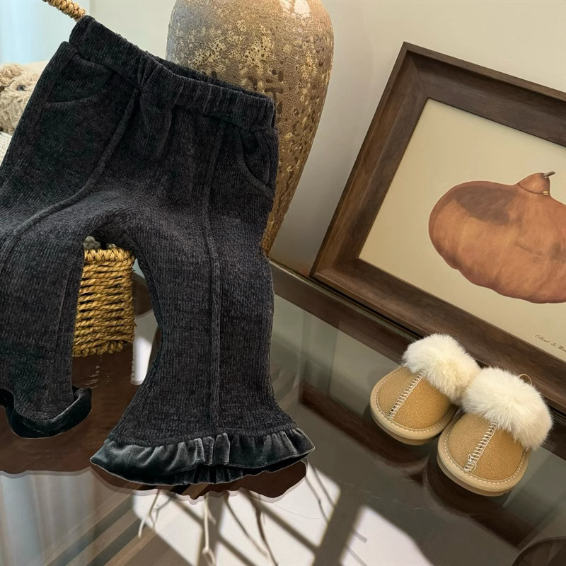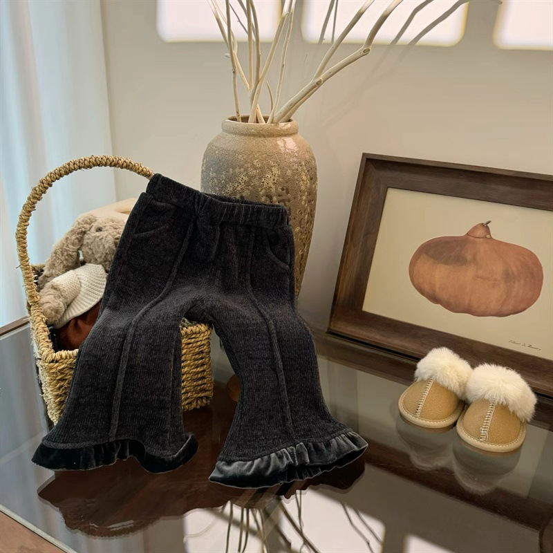 Tongxingyuan 달콤한 귀여운 한국 아동복 겨울 새로운 달콤한 아름다움 바오양 공기 따뜻한 높은 회색 기모 플레어 바지스토어 가기