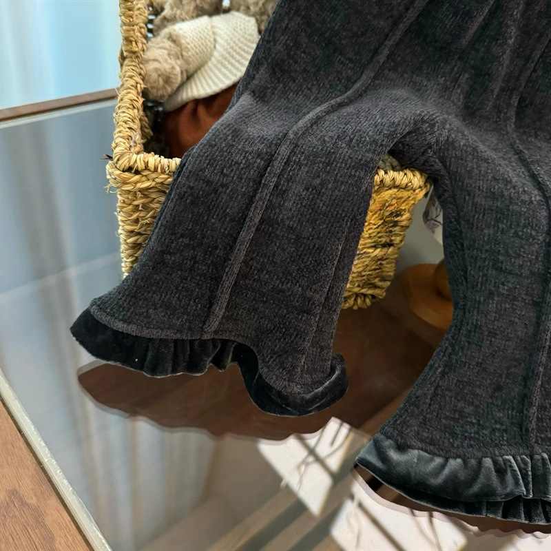 Tongxingyuan 달콤한 귀여운 한국 아동복 겨울 새로운 달콤한 아름다움 바오양 공기 따뜻한 높은 회색 기모 플레어 바지