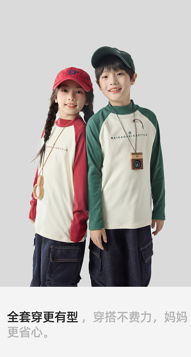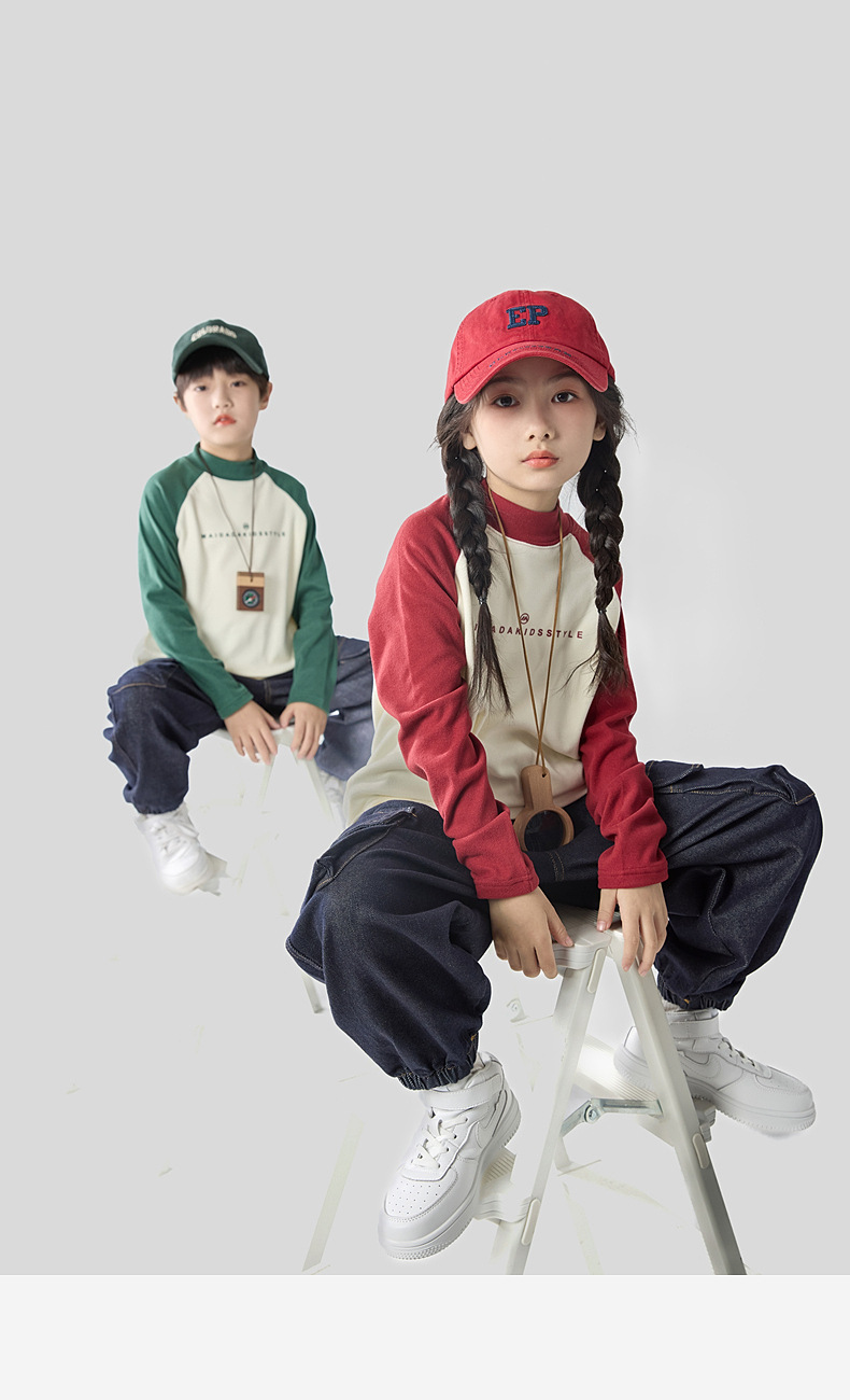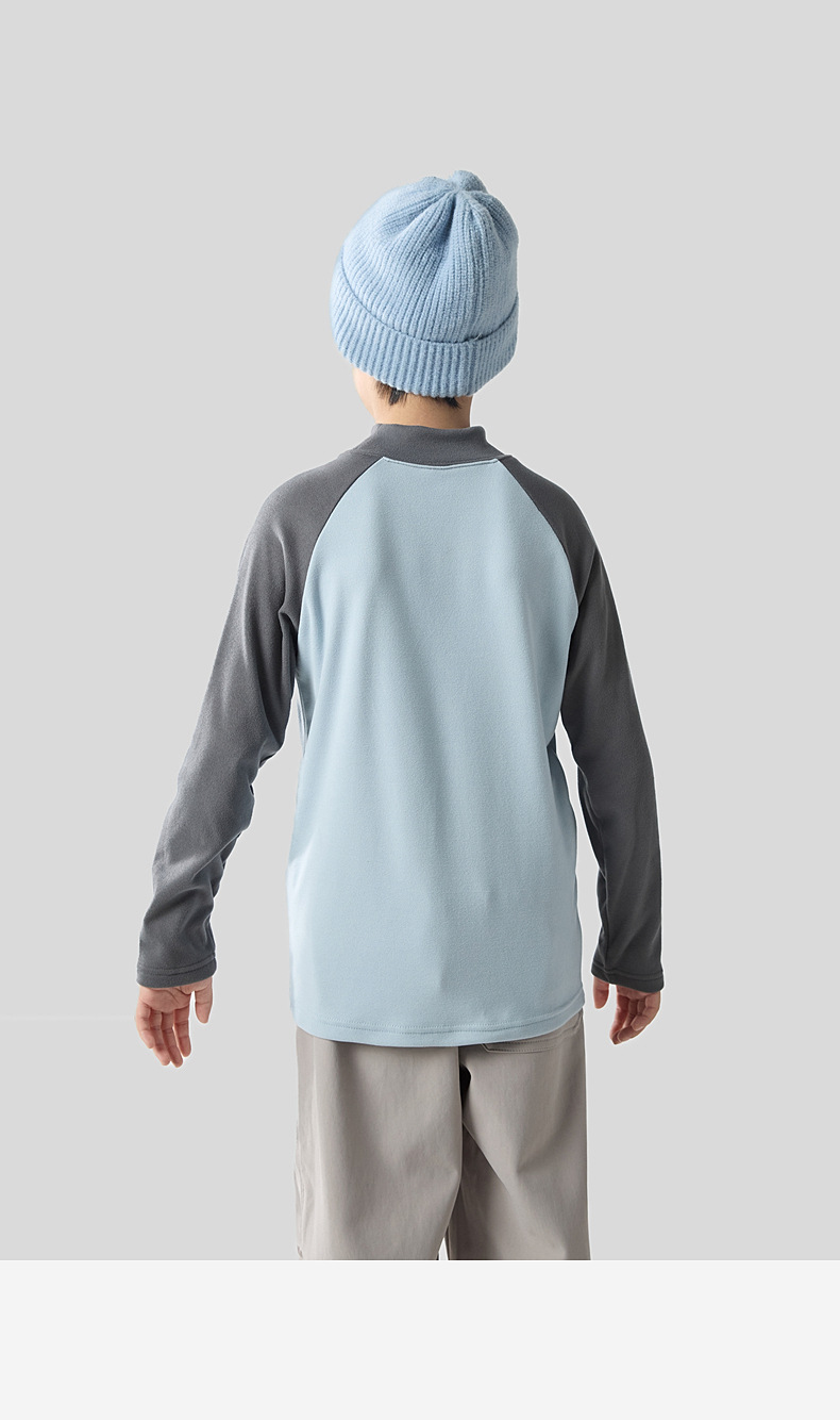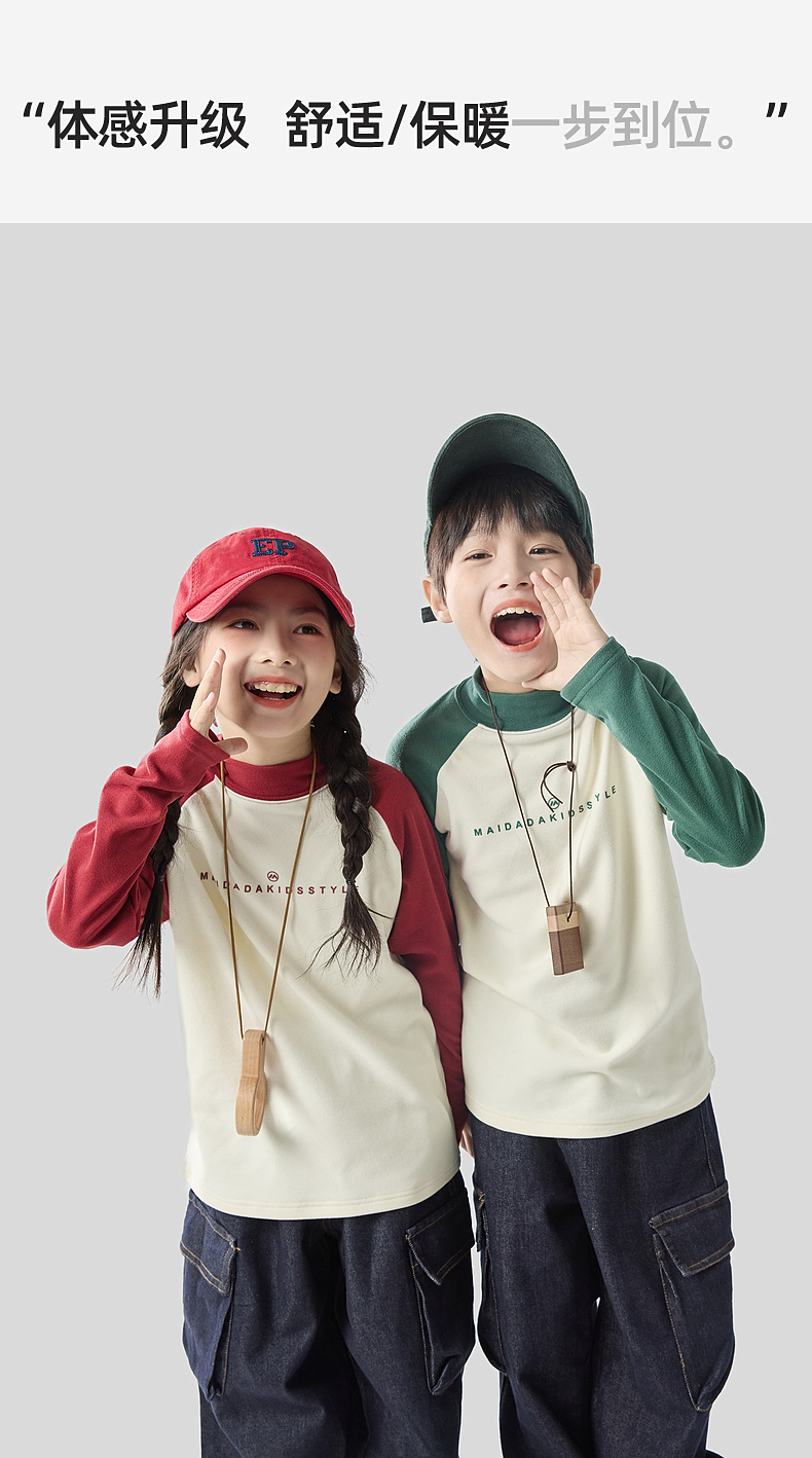 2024 가을 겨울 소년과 소녀 티셔츠 Raglan 슬리브 따뜻한 탑 천연 코코넛 양털 자체 가열 반 높이 칼라 어린이 셔츠스토어 가기