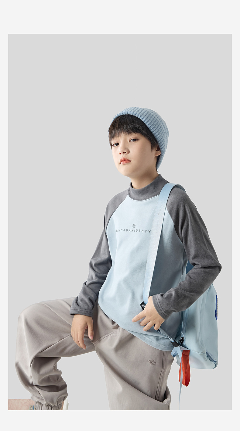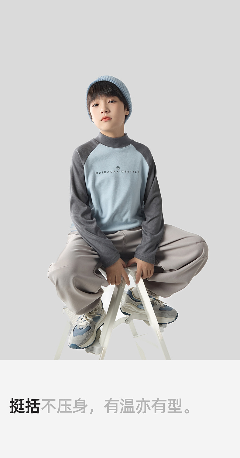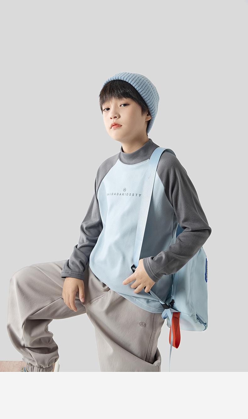 2024 가을 겨울 소년과 소녀 티셔츠 Raglan 슬리브 따뜻한 탑 천연 코코넛 양털 자체 가열 반 높이 칼라 어린이 셔츠스토어 가기