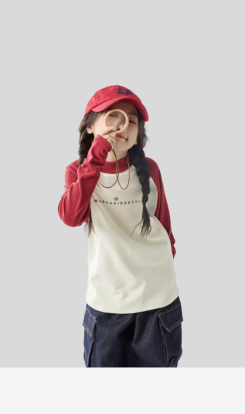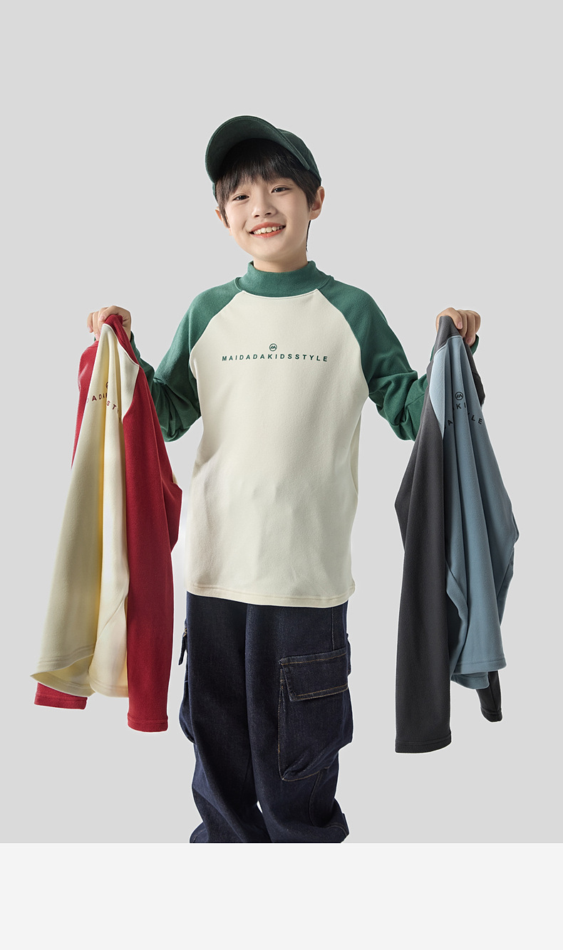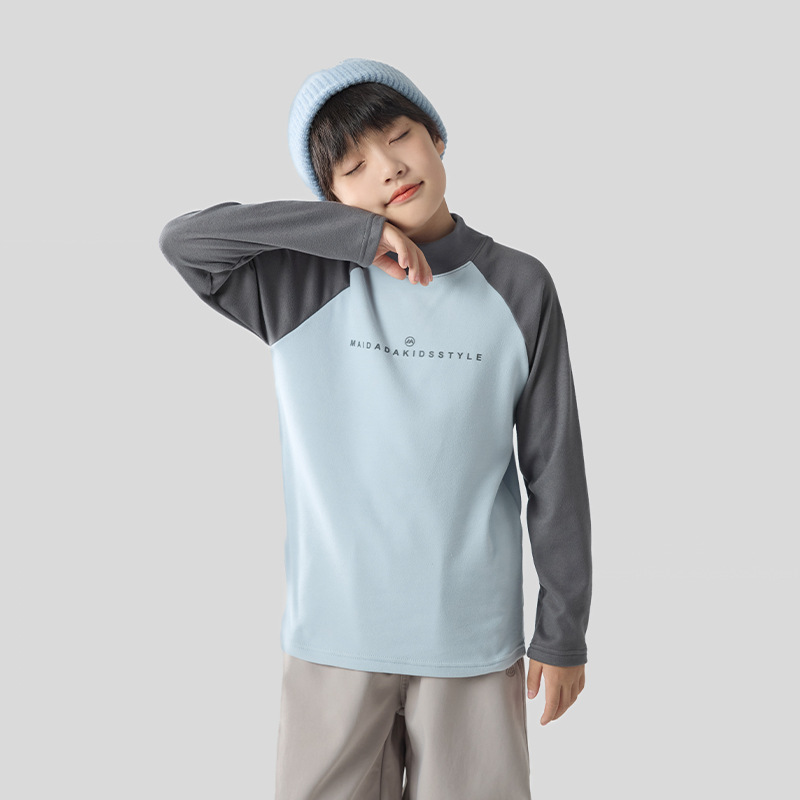 2024 가을 겨울 소년과 소녀 티셔츠 Raglan 슬리브 따뜻한 탑 천연 코코넛 양털 자체 가열 반 높이 칼라 어린이 셔츠