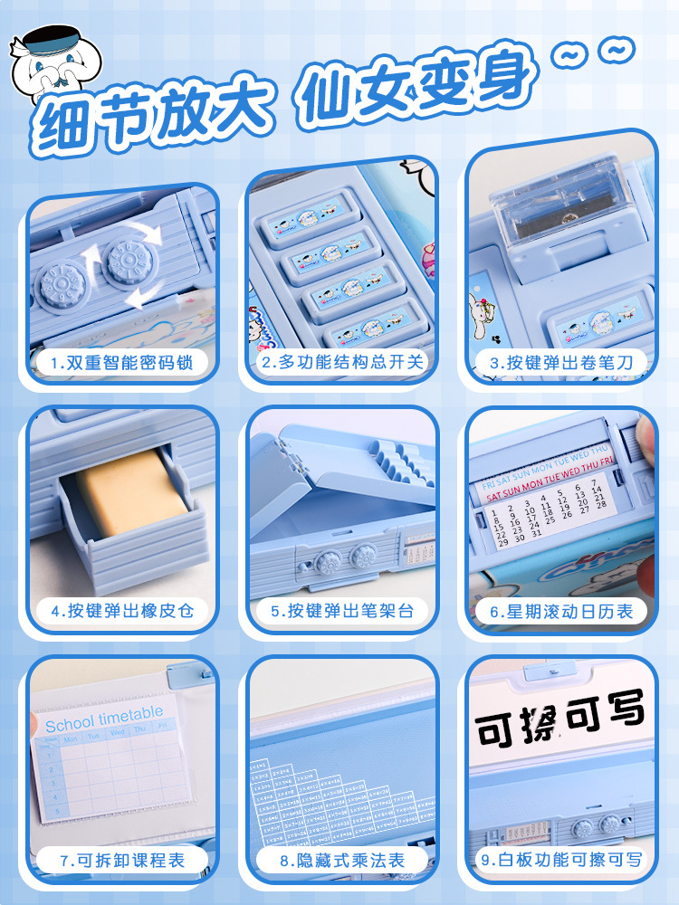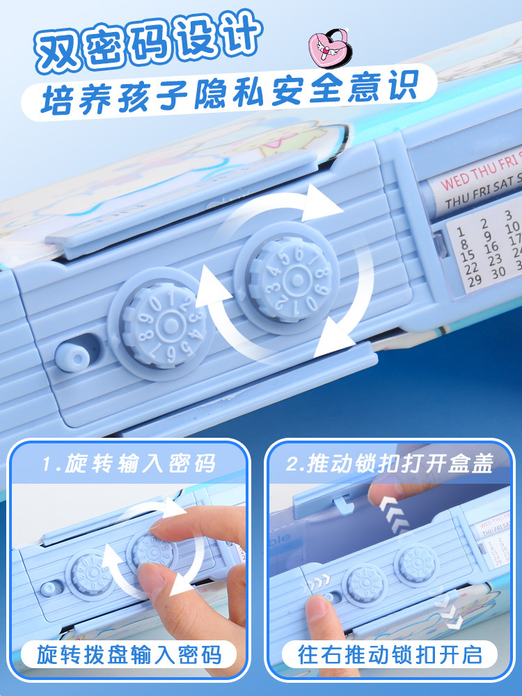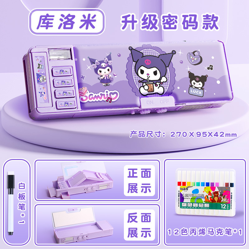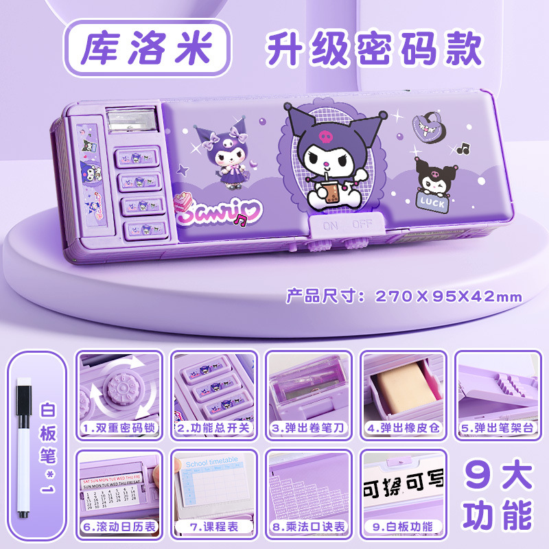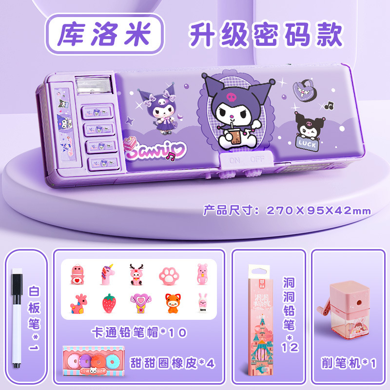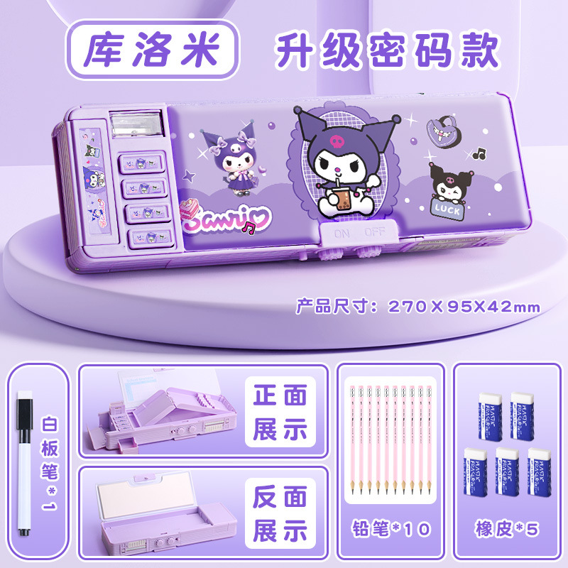 초등학생을위한 다기능 문구 케이스 대용량 새 연필 케이스 kulomi 소녀 암호 잠금 메커니즘 펜 케이스