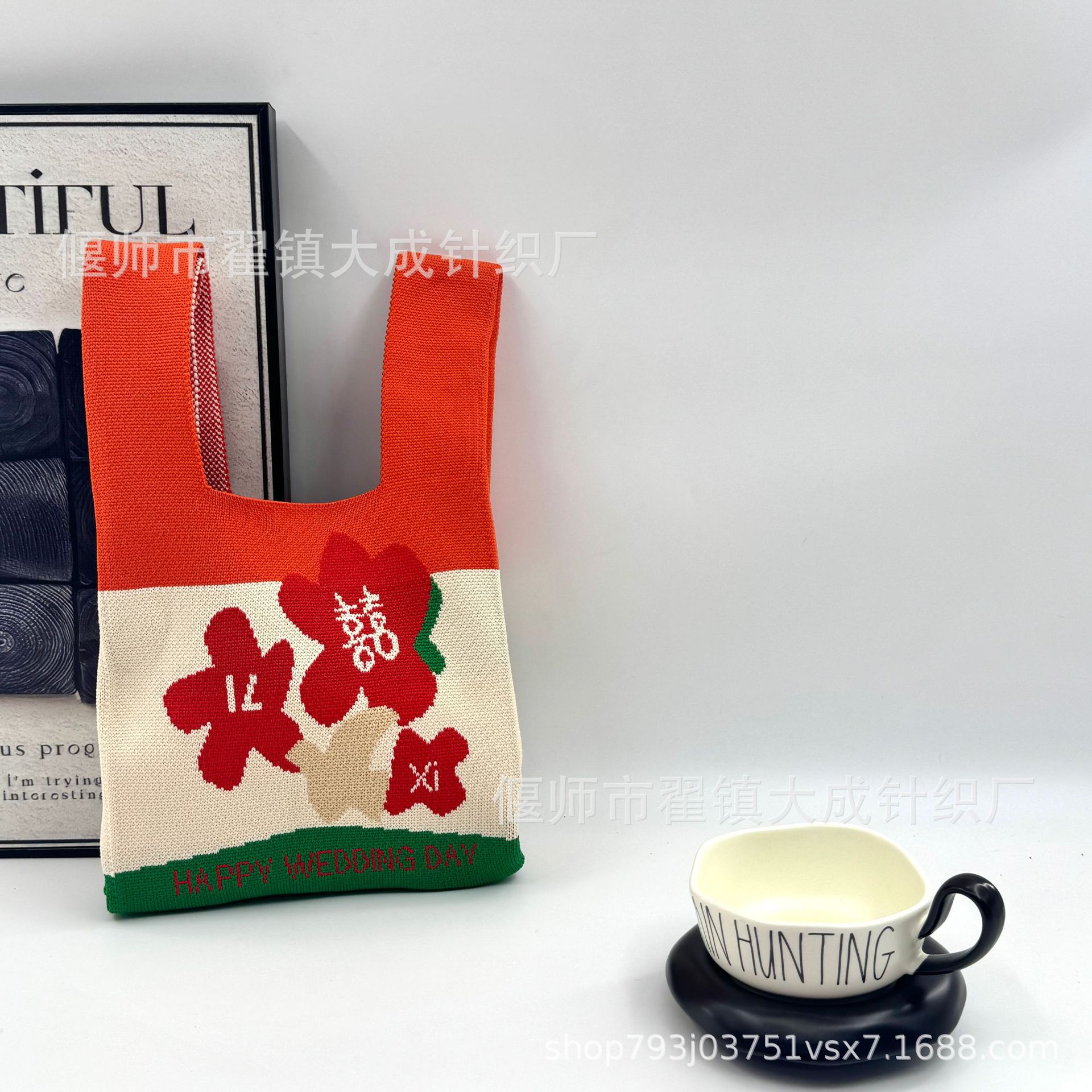 크로스보더 선물 가방 아마존 도매 대용량 토트백 니트 플라이 니트 가방 기념품 선물 가방 숄더백