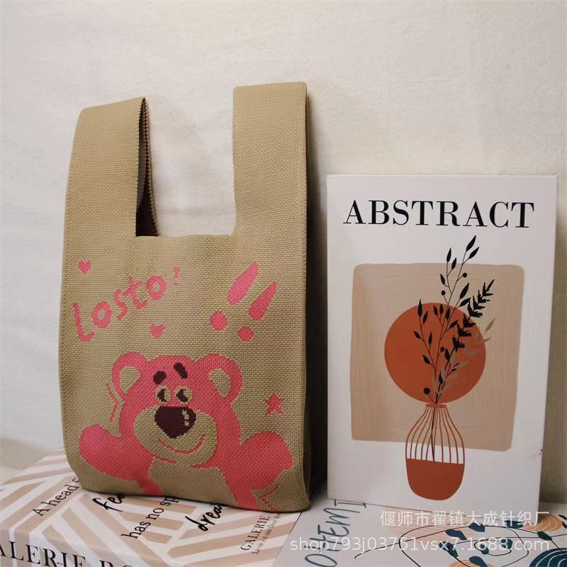 크로스보더 선물 가방 아마존 도매 대용량 토트백 니트 플라이 니트 가방 기념품 선물 가방 숄더백스토어 가기