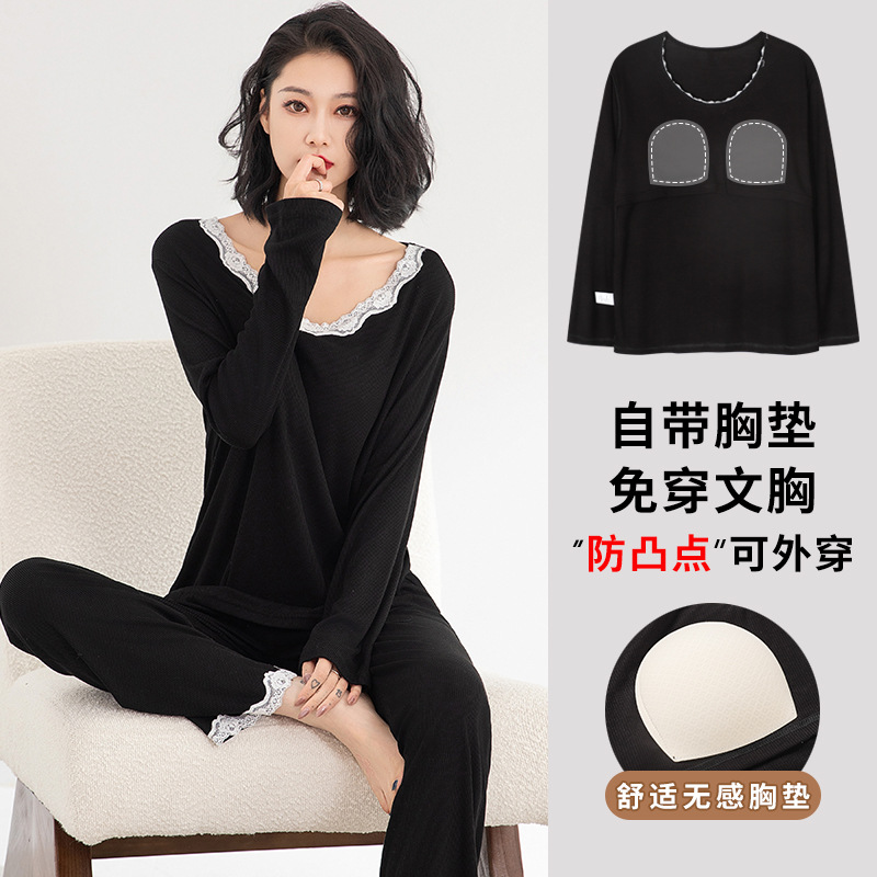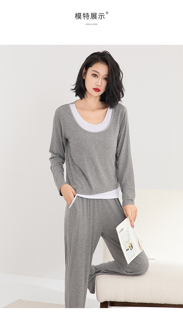 모달 파자마 여성의 봄과 가을 가슴 패드 원피스 긴팔 가을과 겨울 플러스 사이즈 가짜 투피스 세트 홈 의류스토어 가기