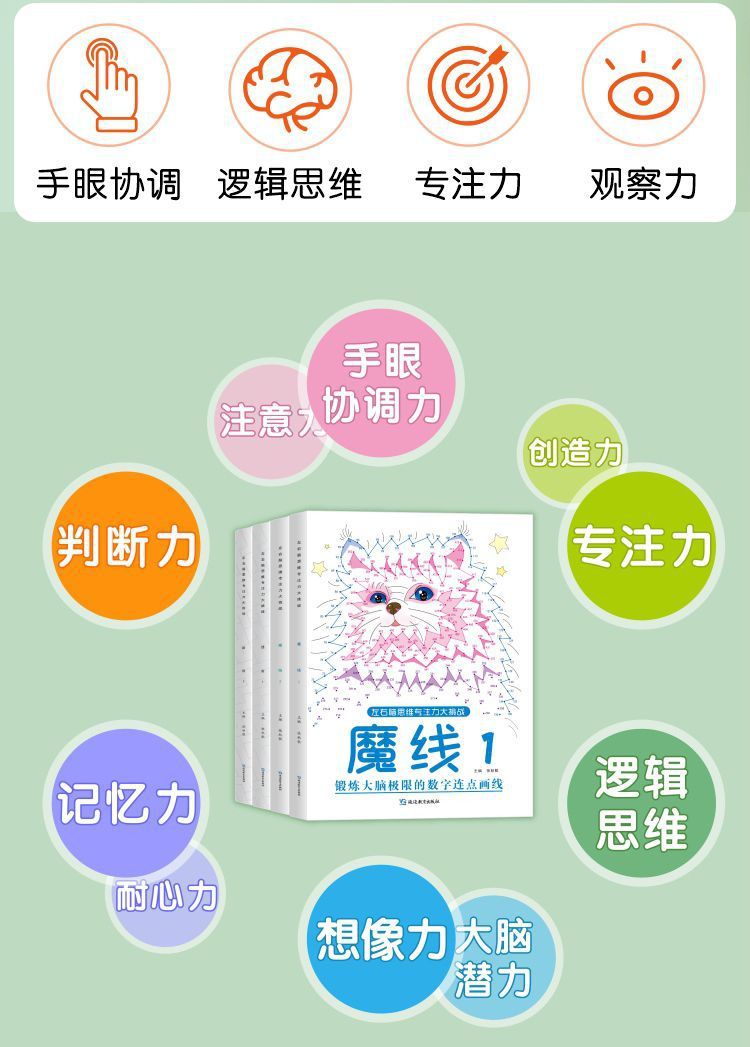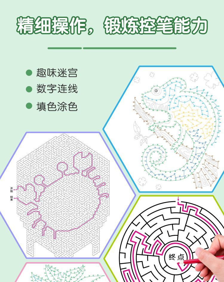 어린이 미로 매직 라인 집중 훈련 어린이 좌우 뇌 유치원 퍼즐 책 집중 연습 도전